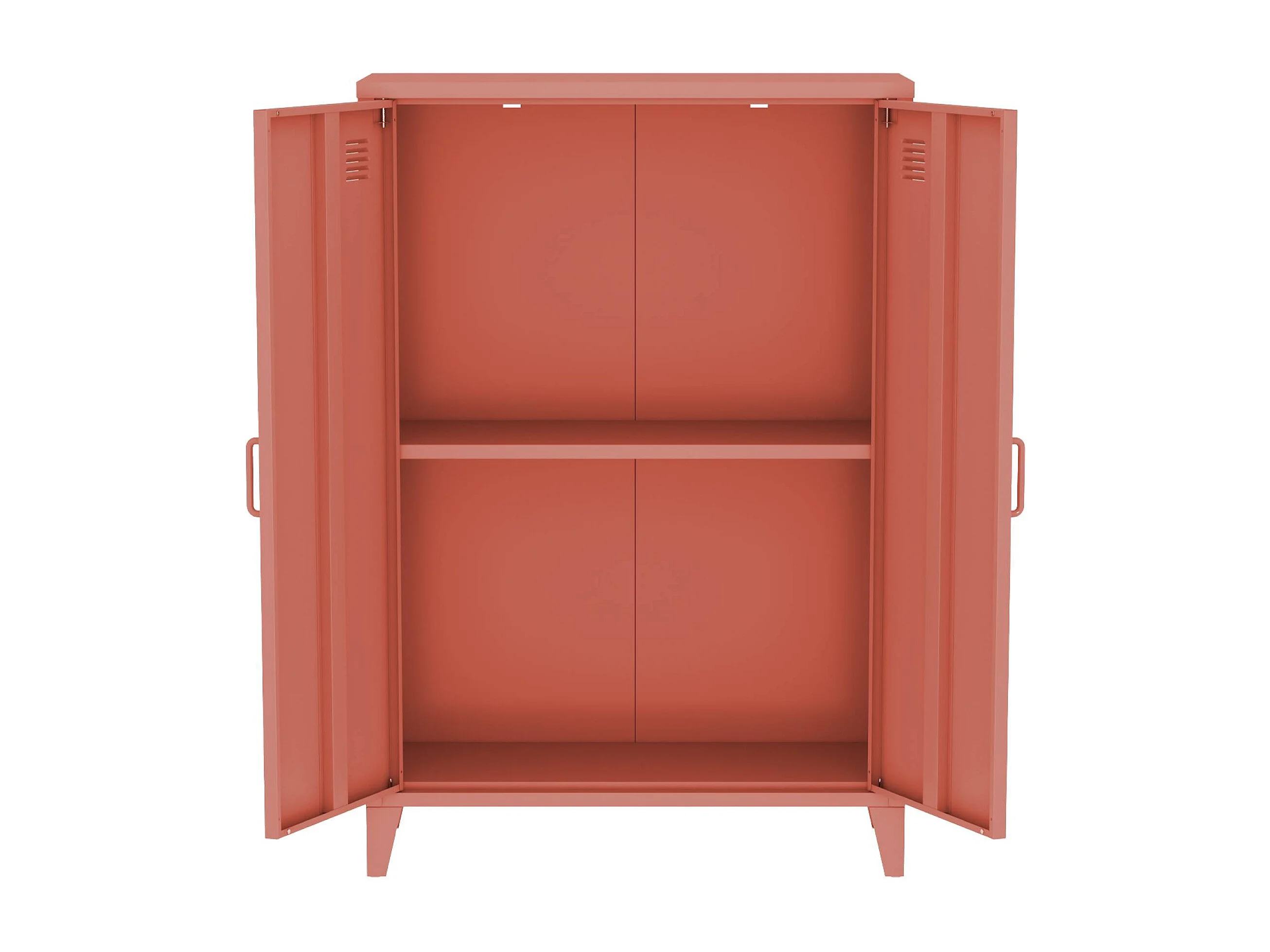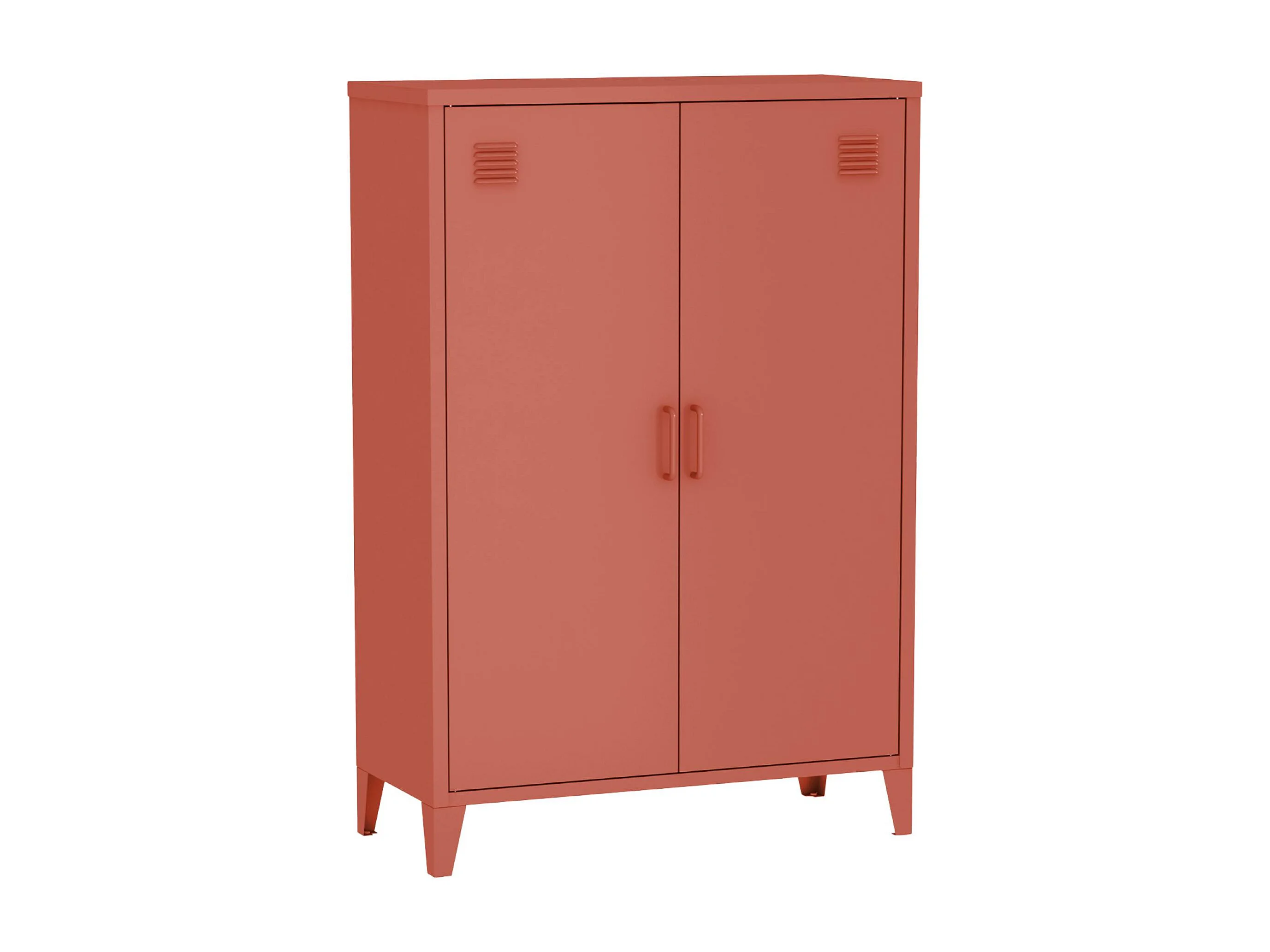 Commode/armoire en métal terracotta. 2 espaces de rangement. casiers