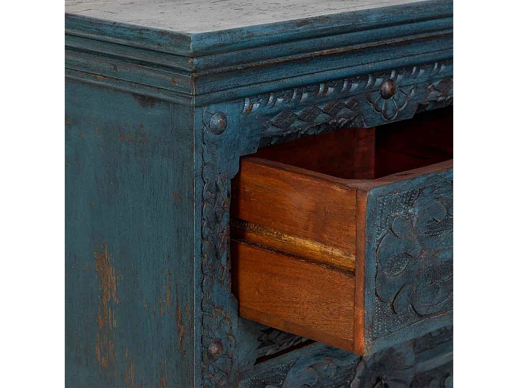 Commode artisanale en bois bleu 100 x 43 x 95 cm (h)