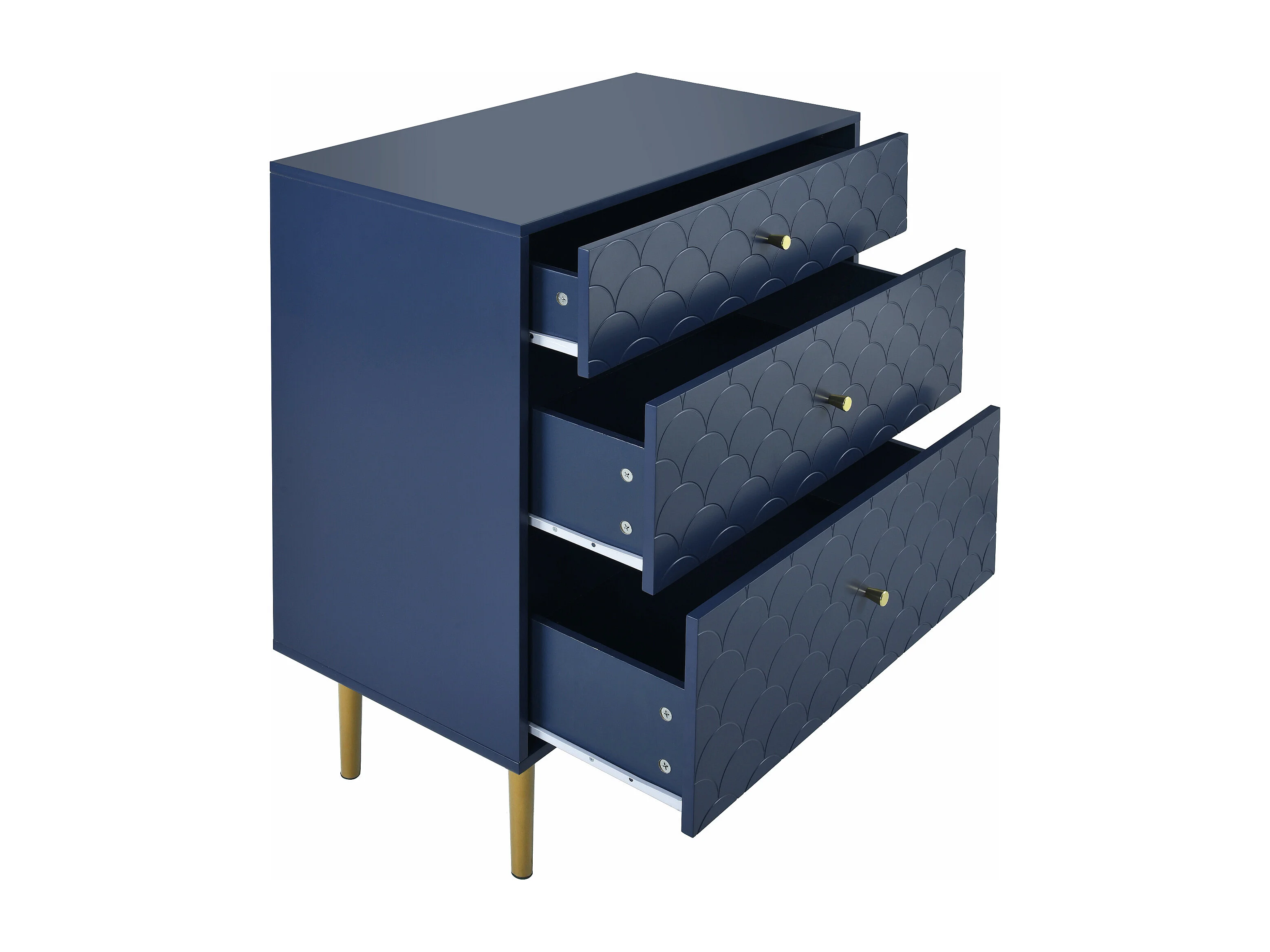 Commode avec 3 tiroirs - Pieds en métal - Bleu marine 75x40x89 cm