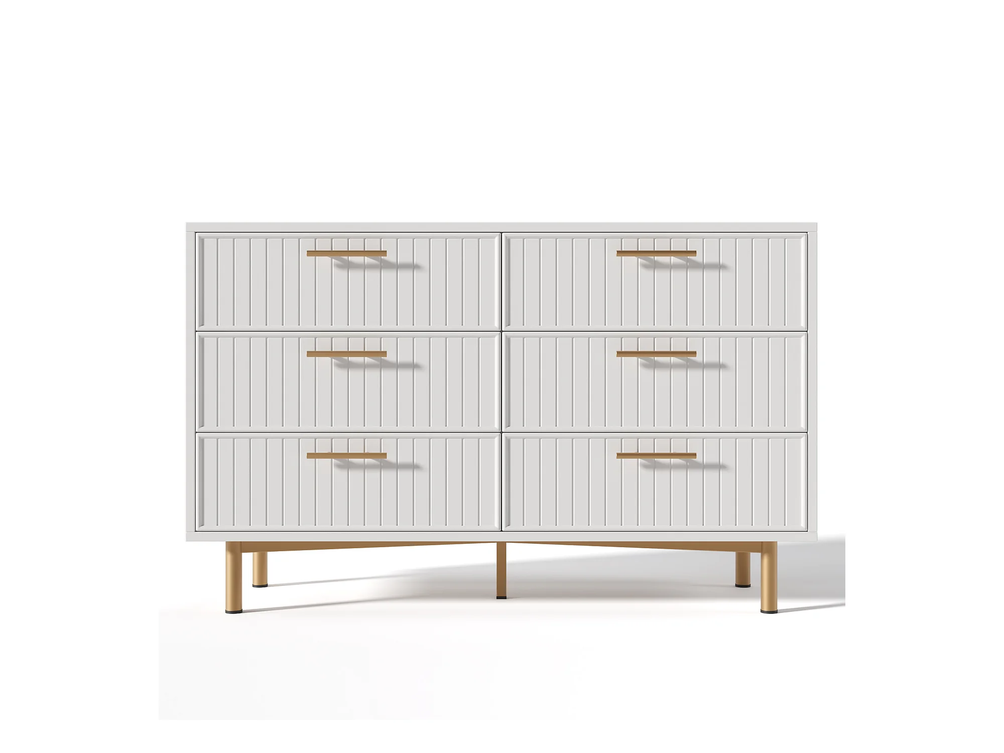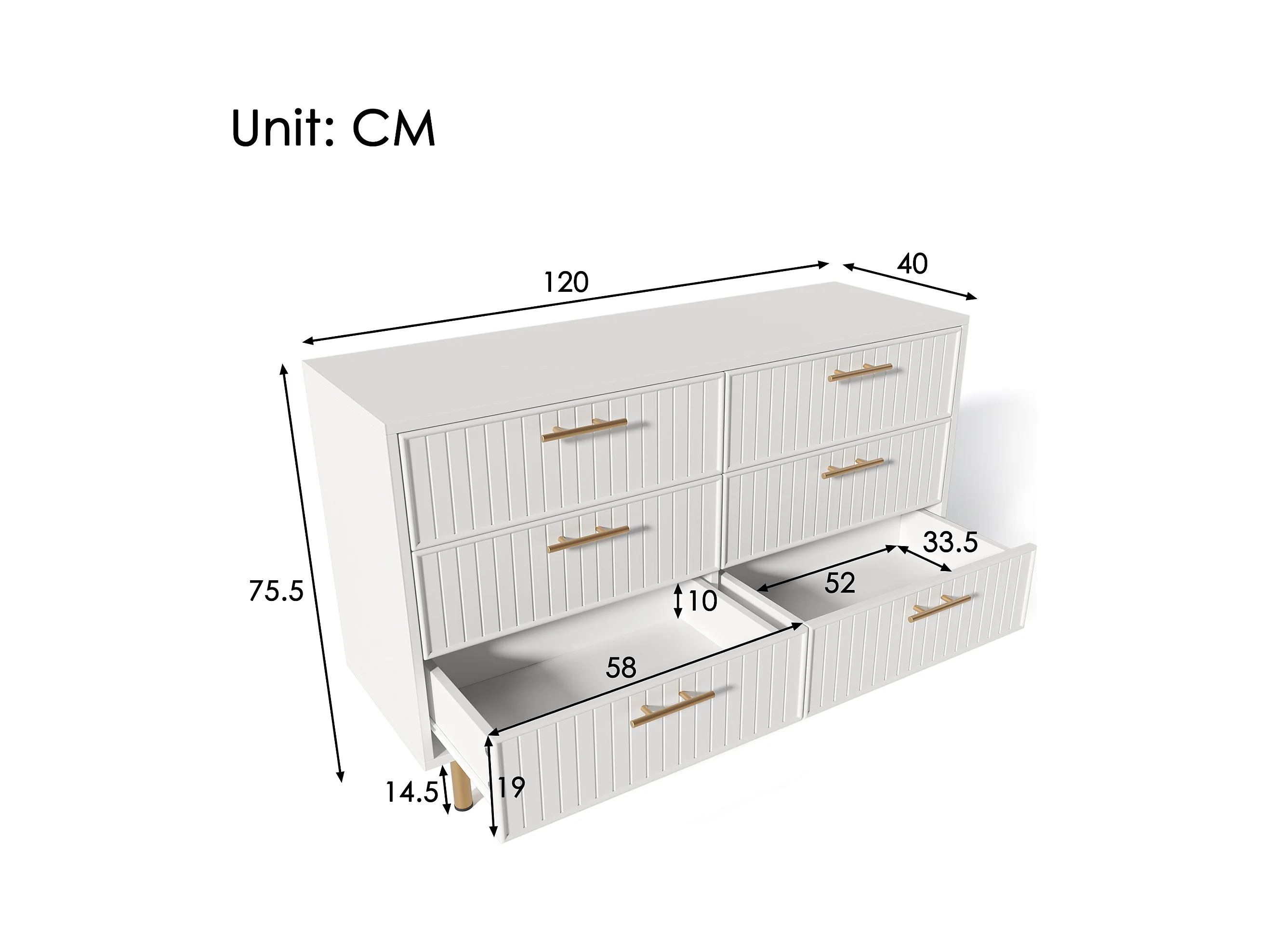 Commode avec 6 tiroirs, buffet blanc plateau haut pour la chambre et tous les espaces de vie, blanc - h75 / B120 / T40 cm