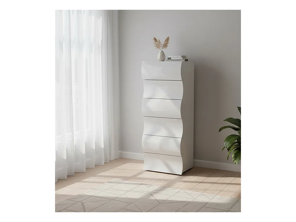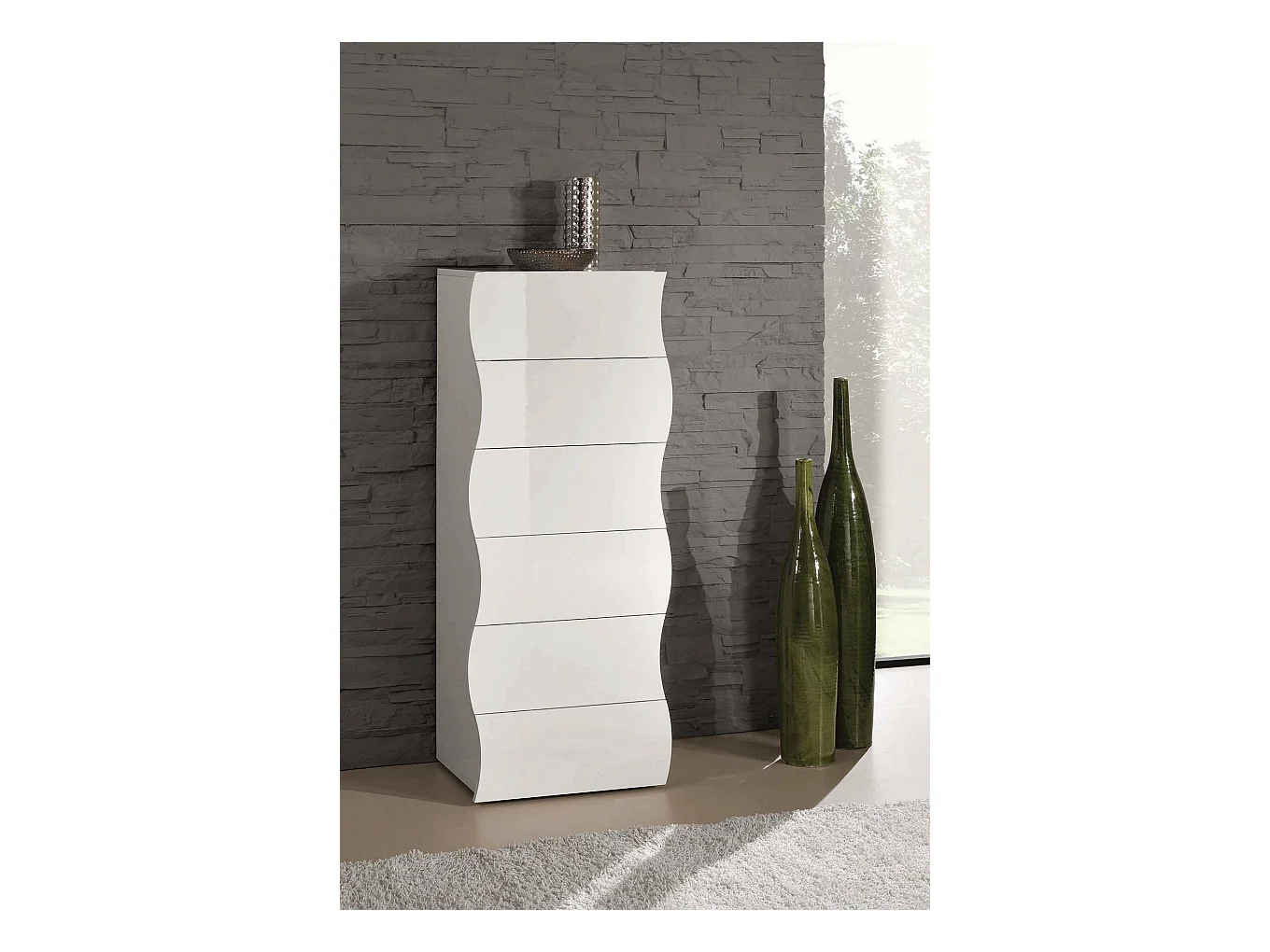 Commode Dhaa, Commode 6 tiroirs, Commode de chambre, 100% Made in Italy, 50x40h122 cm, Blanc brillant