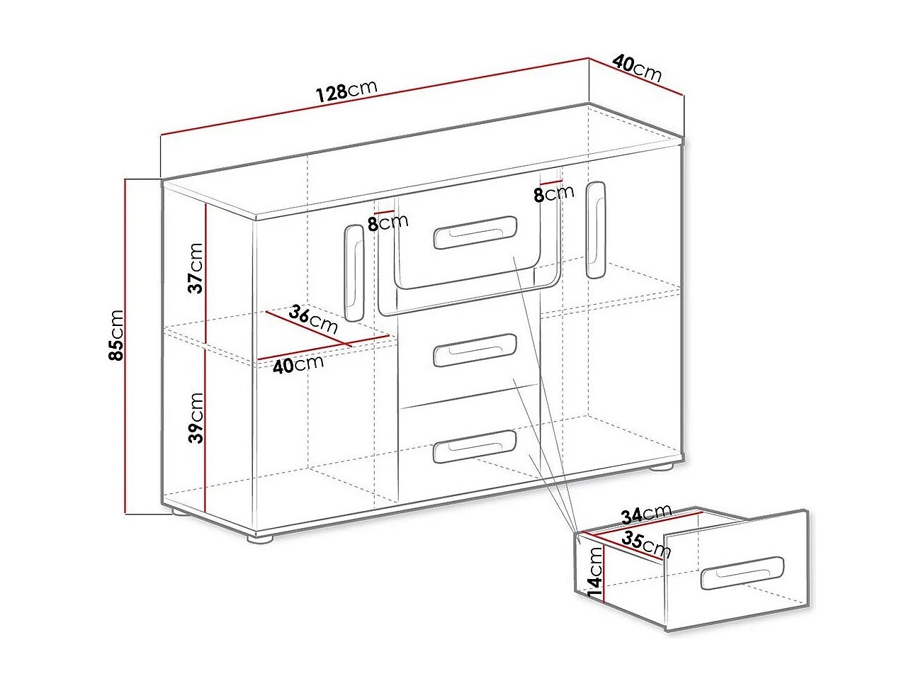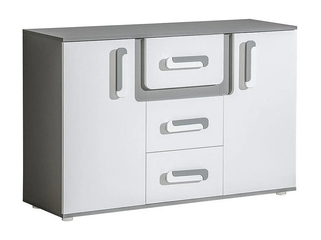 Commode Aviseve 102, Blanc|Anthracite, Tiroirs et portes, Nombre de tiroirs: 3, 85x128cm