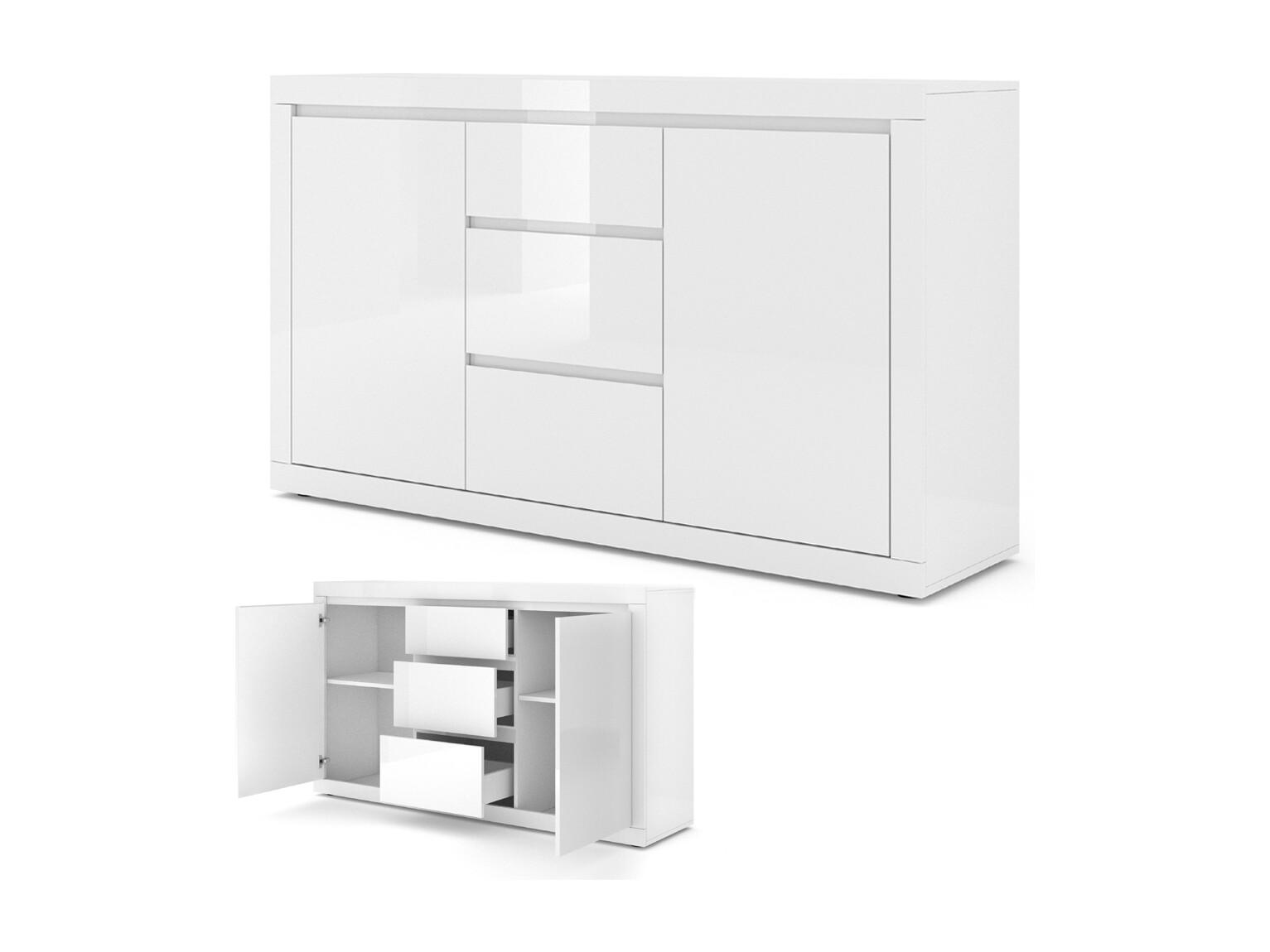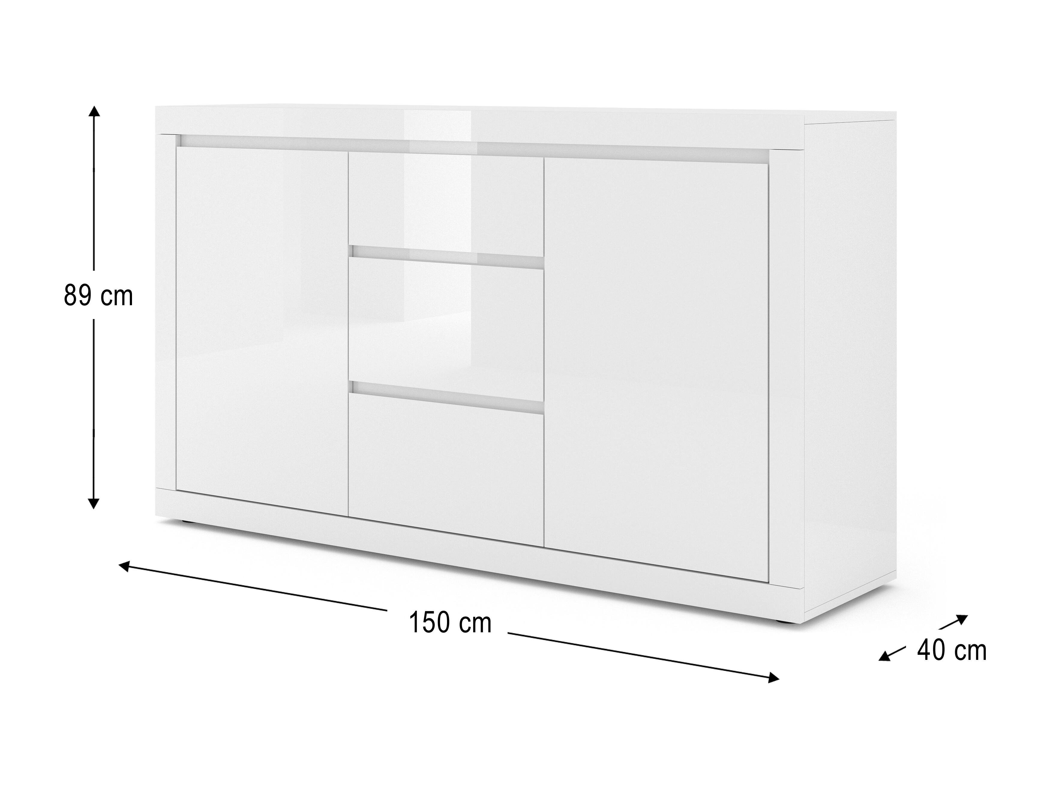 Commode BELLO BIANCO 3 150 cm style italien blanc mat / blanc brillant