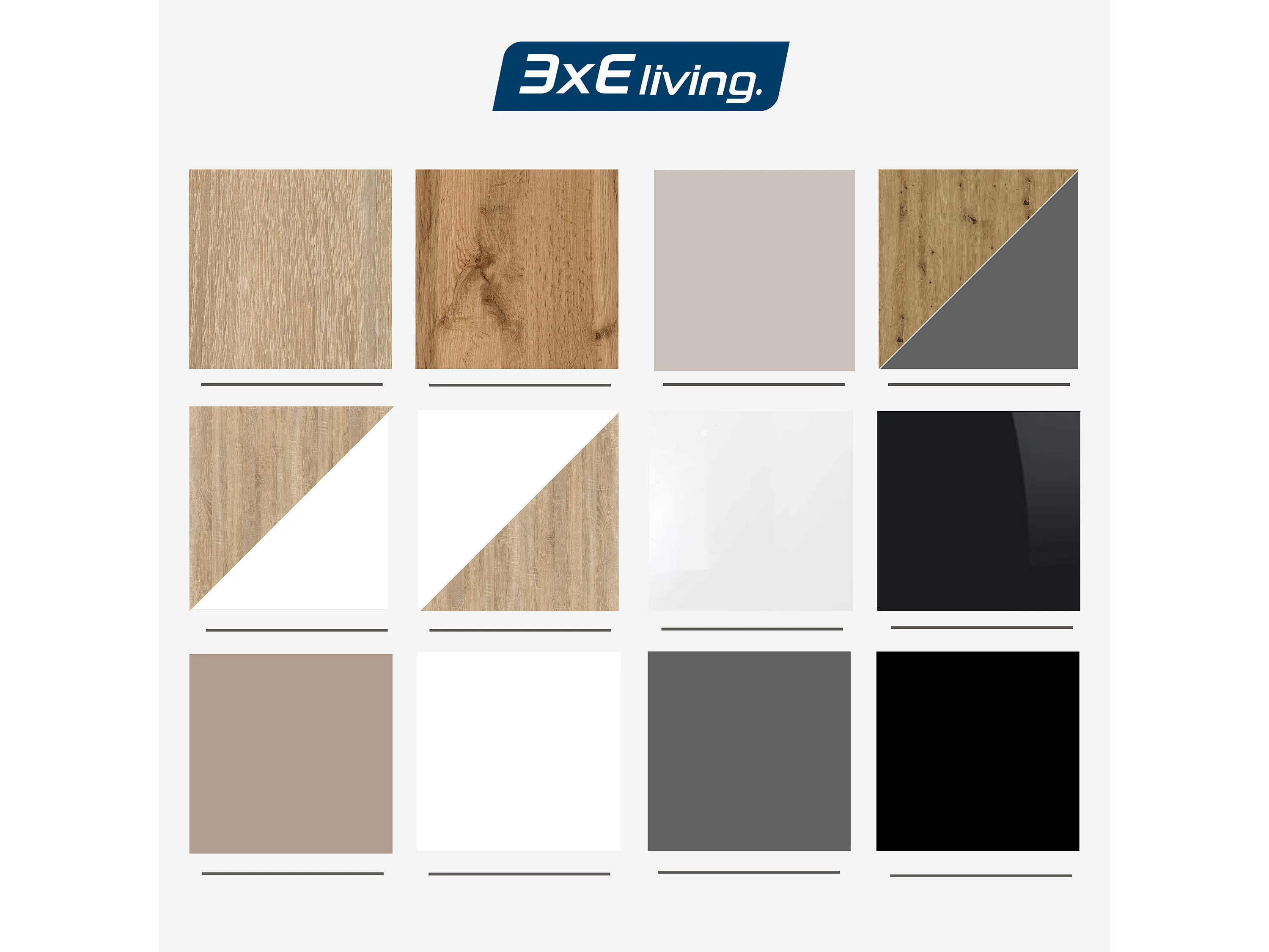 Commode : Blanc Mat / Chêne Sonoma top, 140 x 39 x 79 cm, 3 tiroirs, 2 portes