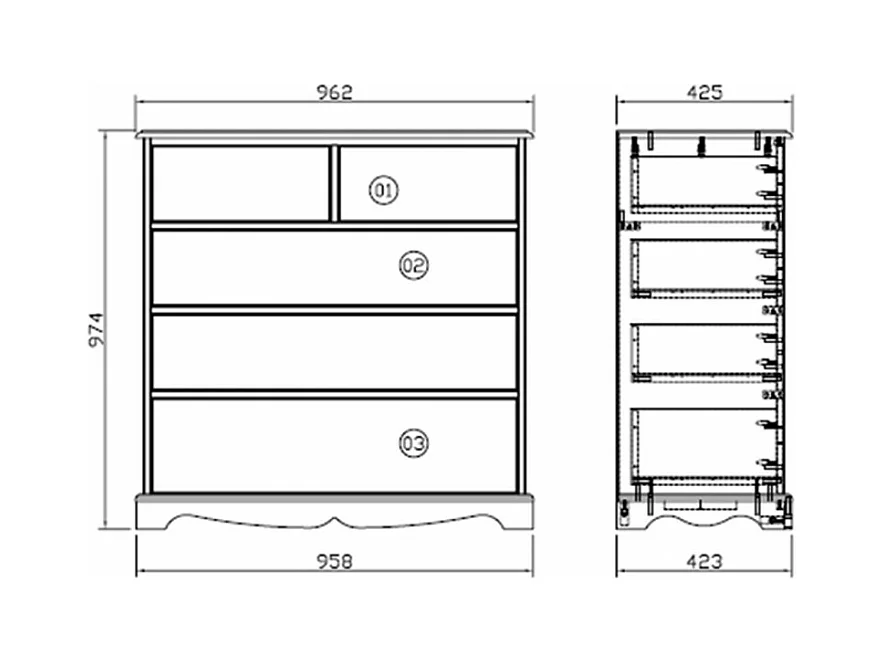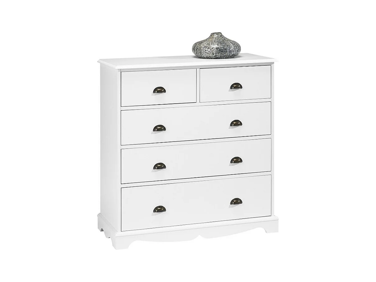 Commode Blanche 5 Tiroirs Style Anglais L 96.2 H 97.4 P 42.5 cm