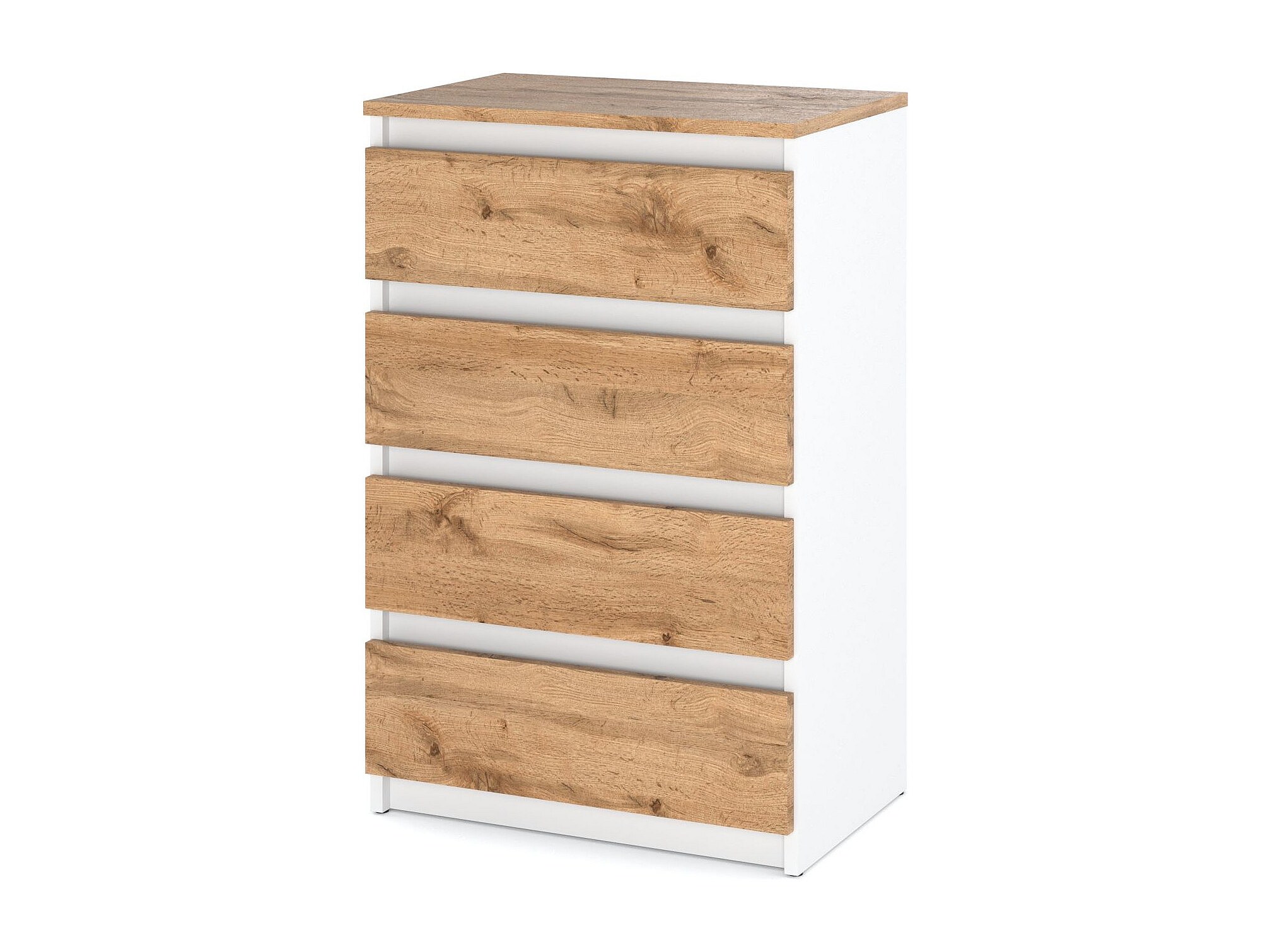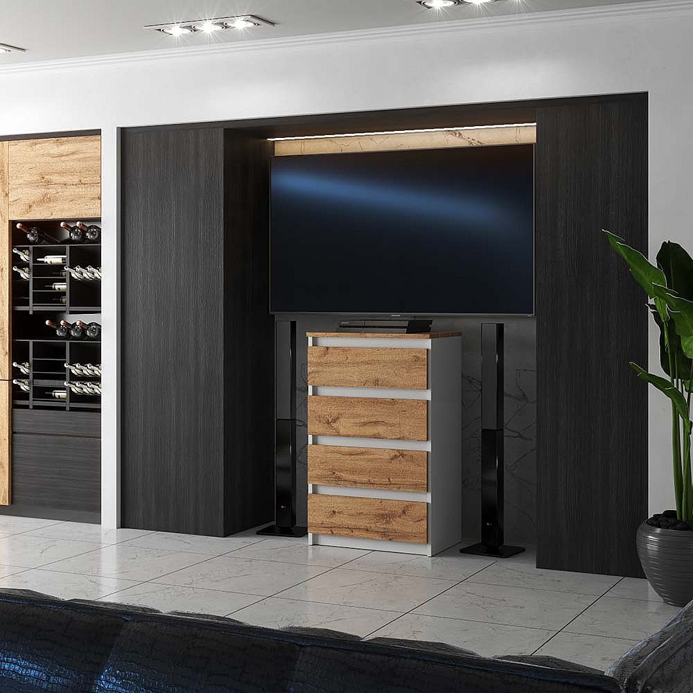 Commode Blanche Chêne Wotan avec 4 Tiroirs 60 cm Meuble TV pour Salon Buffet