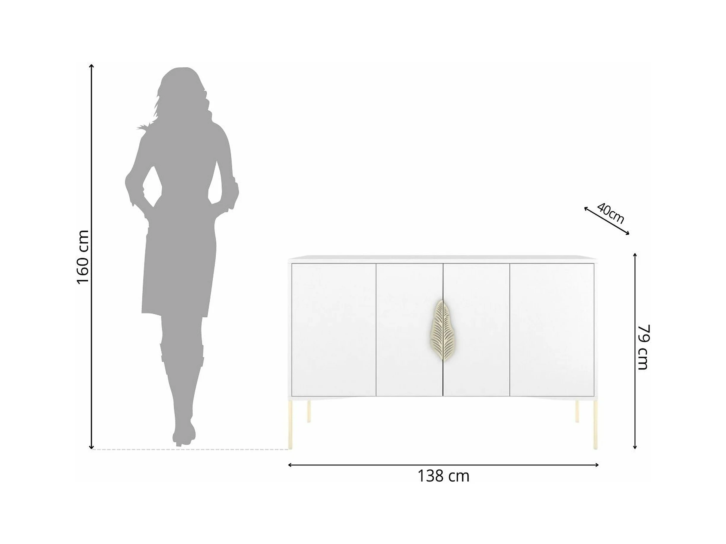 Buffet blanche MERLIN avec accessoires dorés / 138 cm