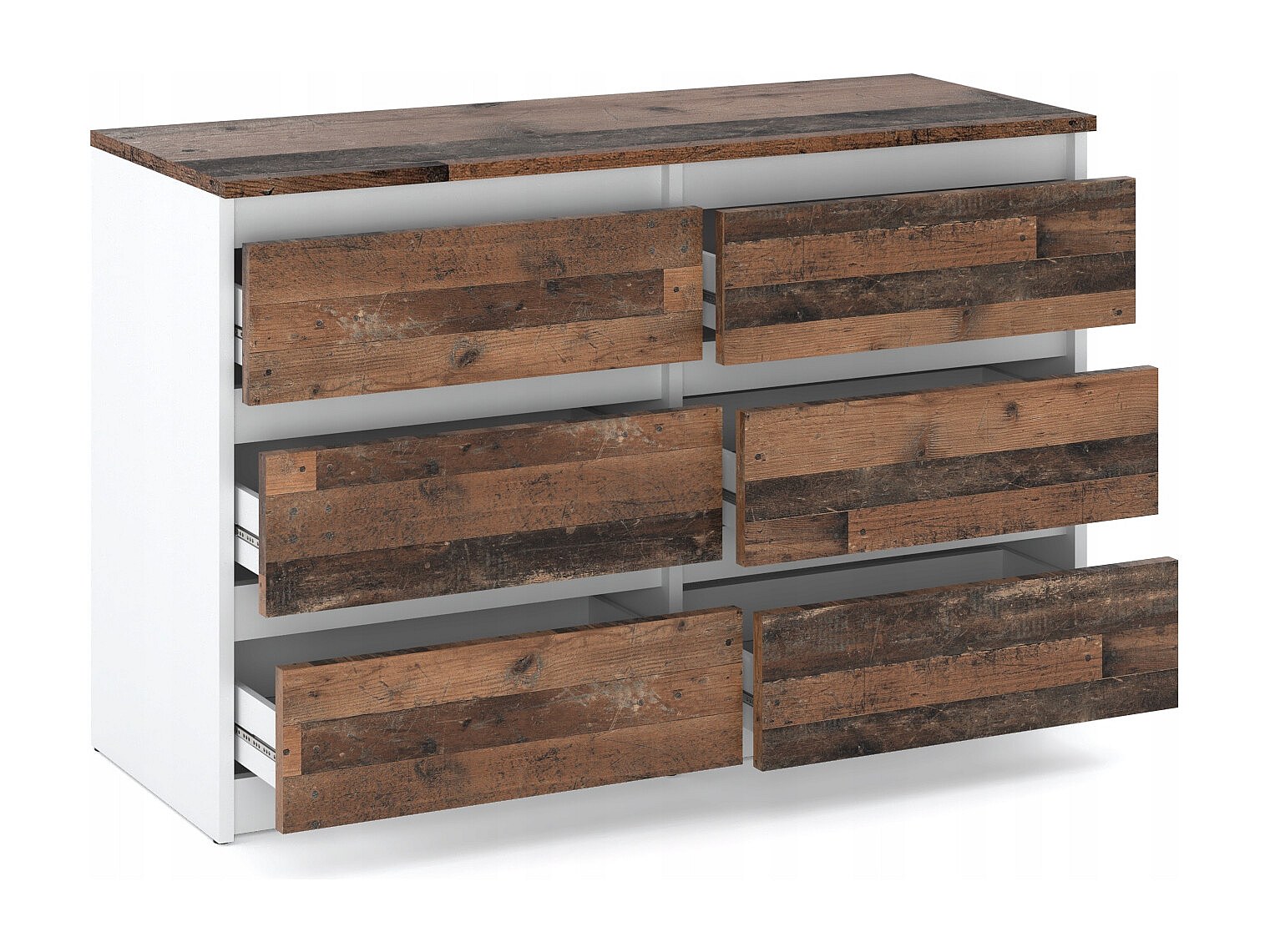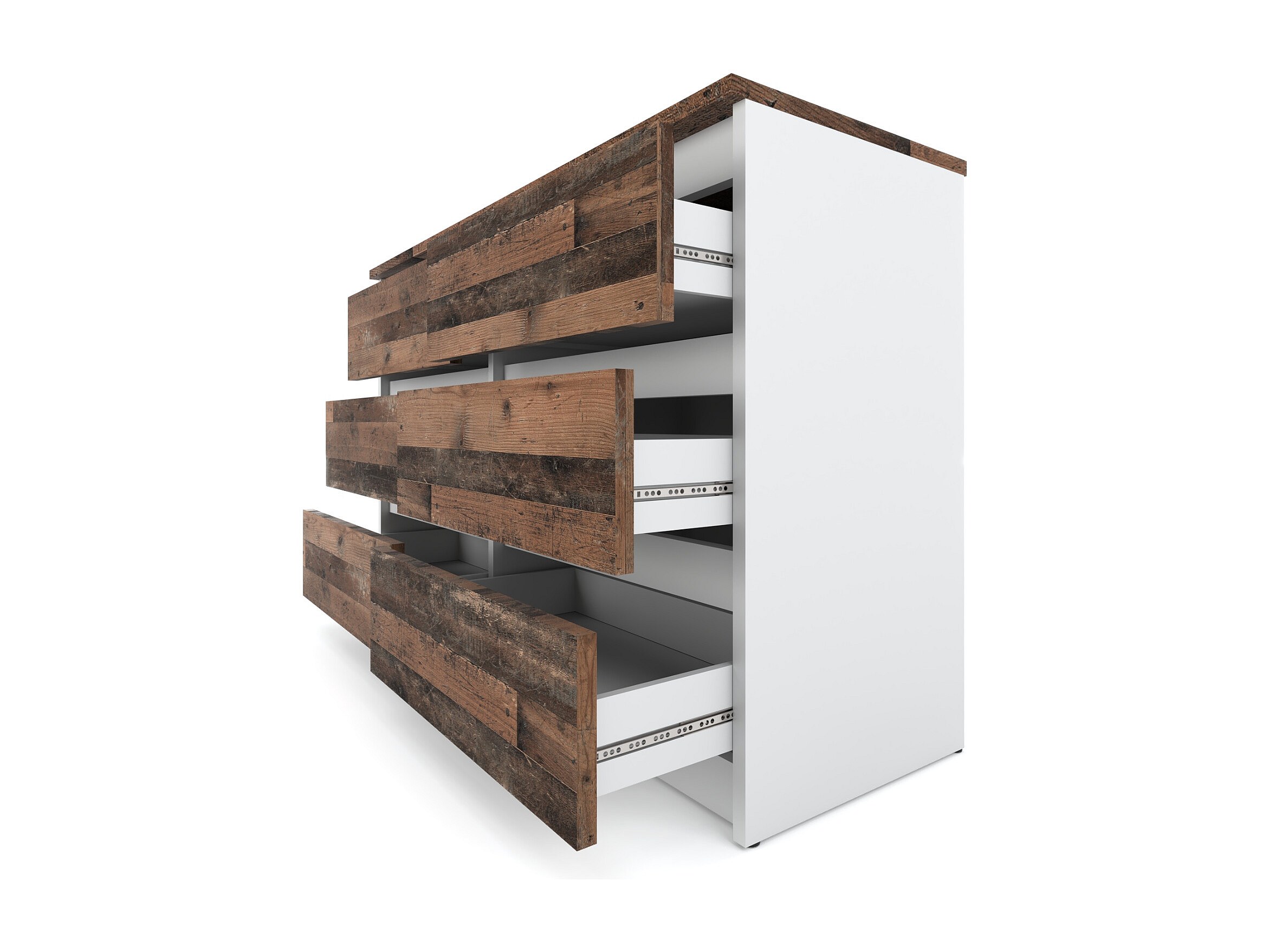 Commode 6 tiroirs – style contemporain – blanc et chêne Wotan – 100 cm -chifonnier