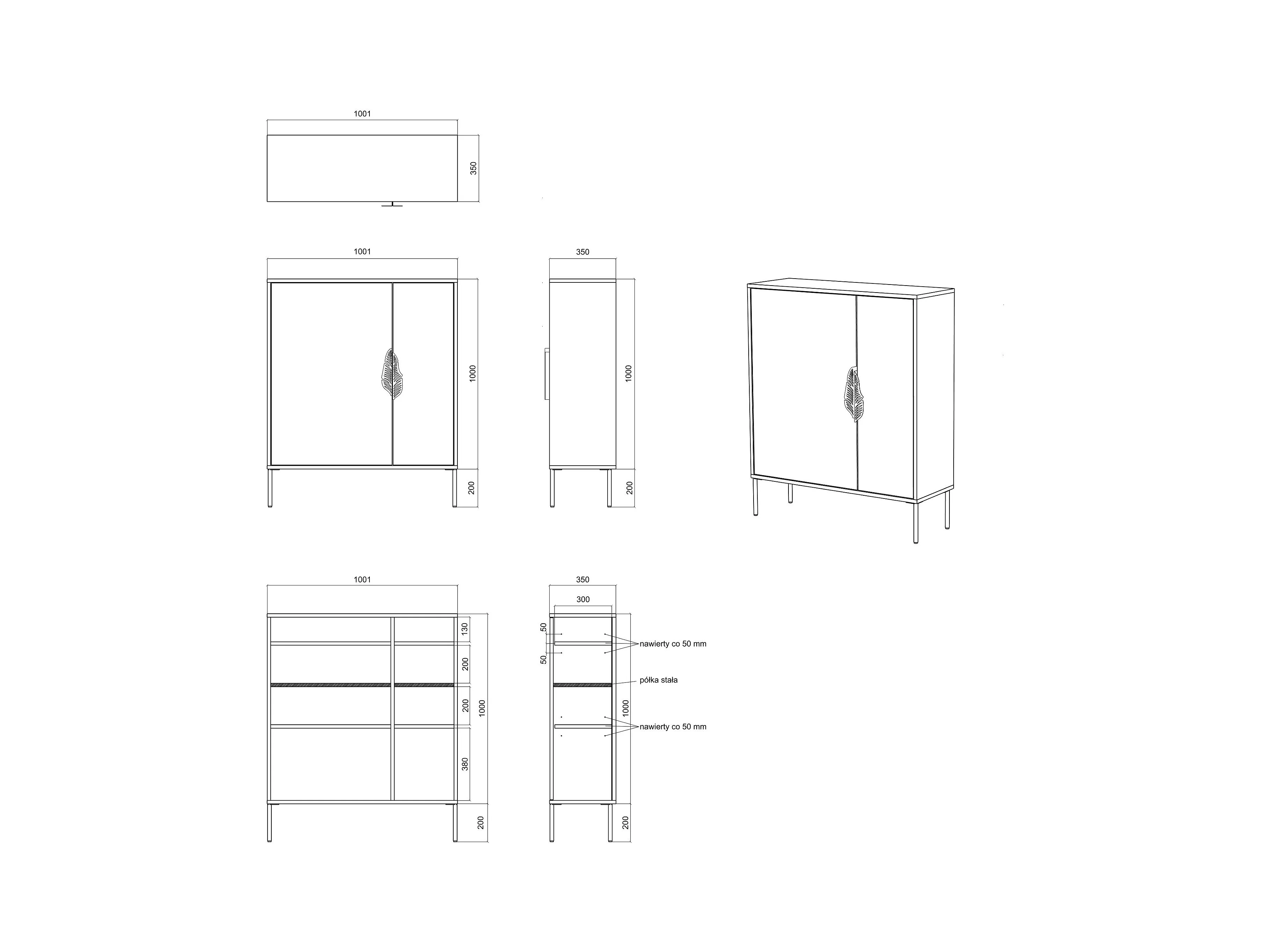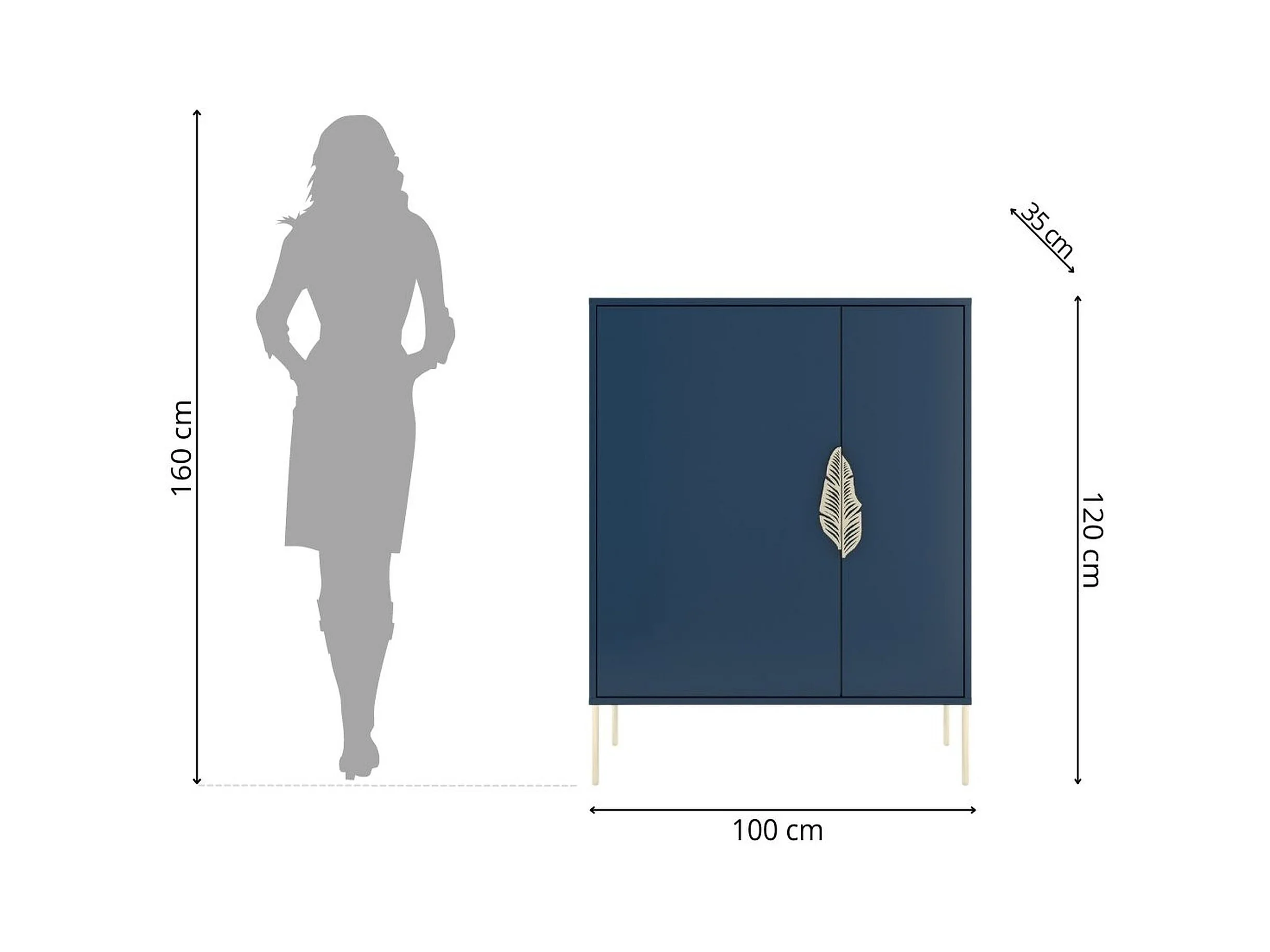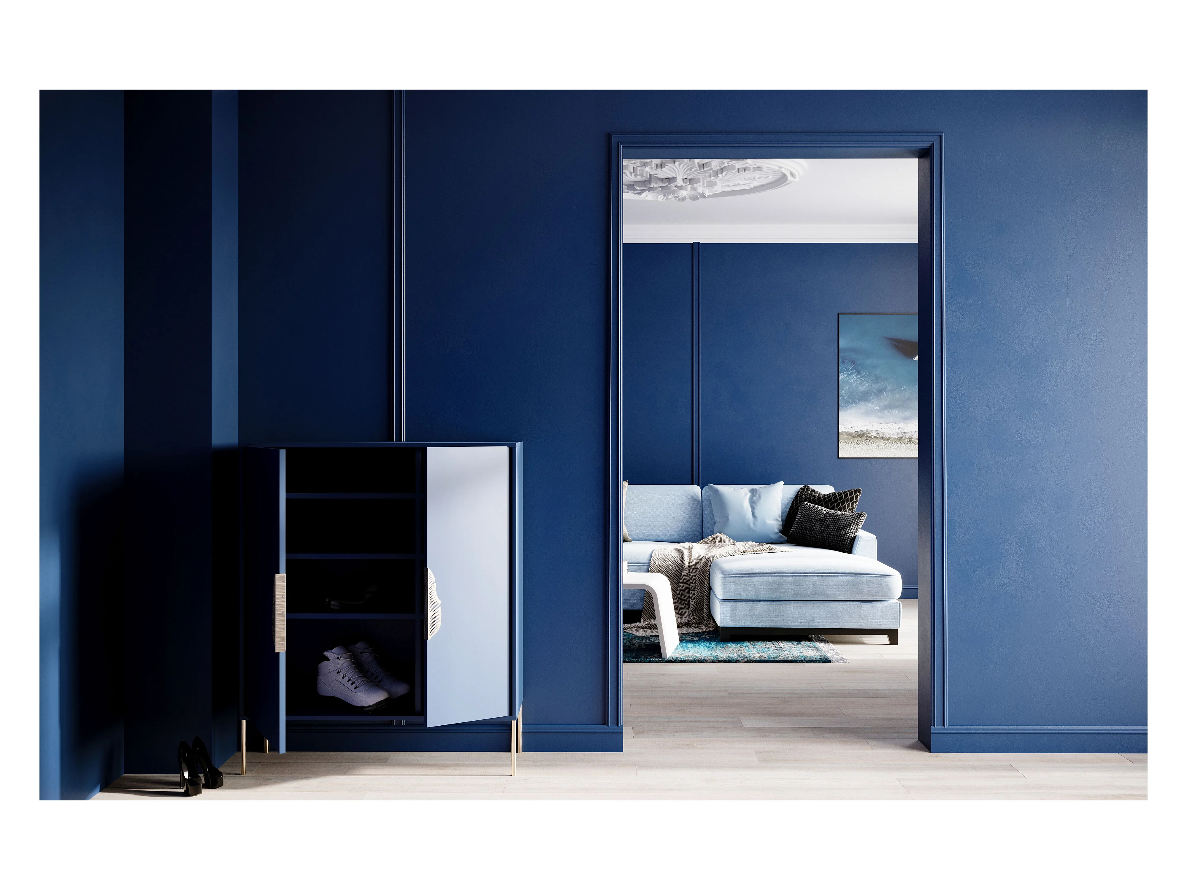 Buffet bleu marine / meuble à chaussures MERLIN avec détails dorés / 100 cm