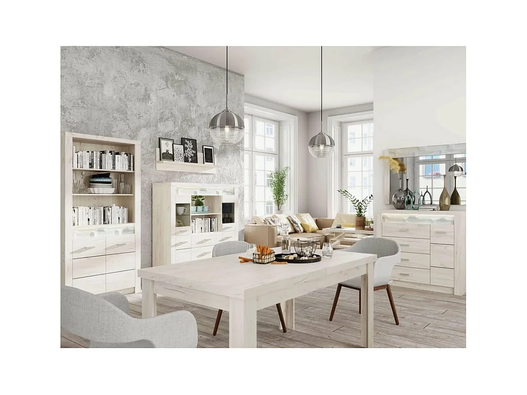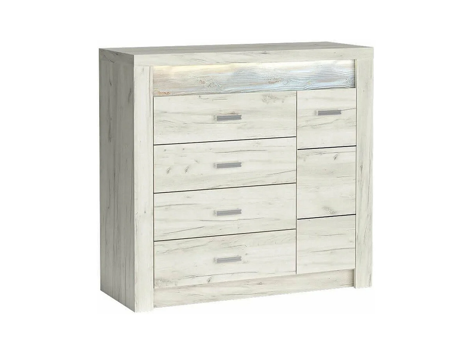 Commode bois blanchi 4 tiroirs avec poignées en métal Forever - Avec LED