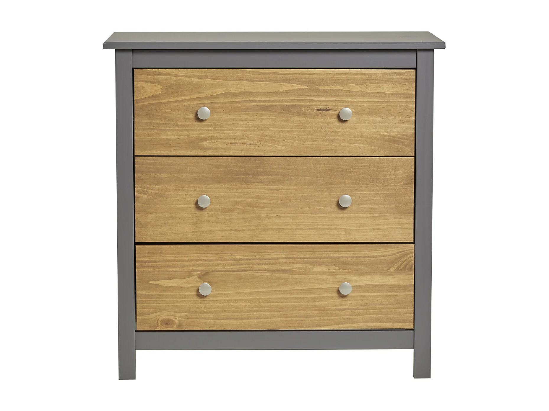 Commode Bonnie Gris 3 Tiroirs, Fabriqué en Bois de pin Massif, 79 cm Longueur