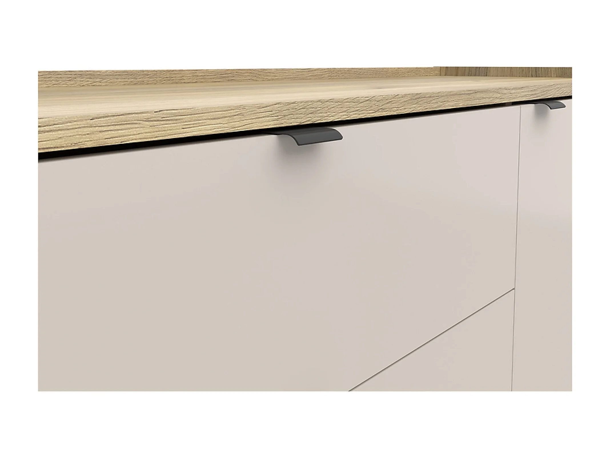 Commode Buffet à 1 porte et 3 tiroirs coloris Chêne mauvella/Beige - Longueur 134 x Profondeur 42 x Hauteur 86 cm