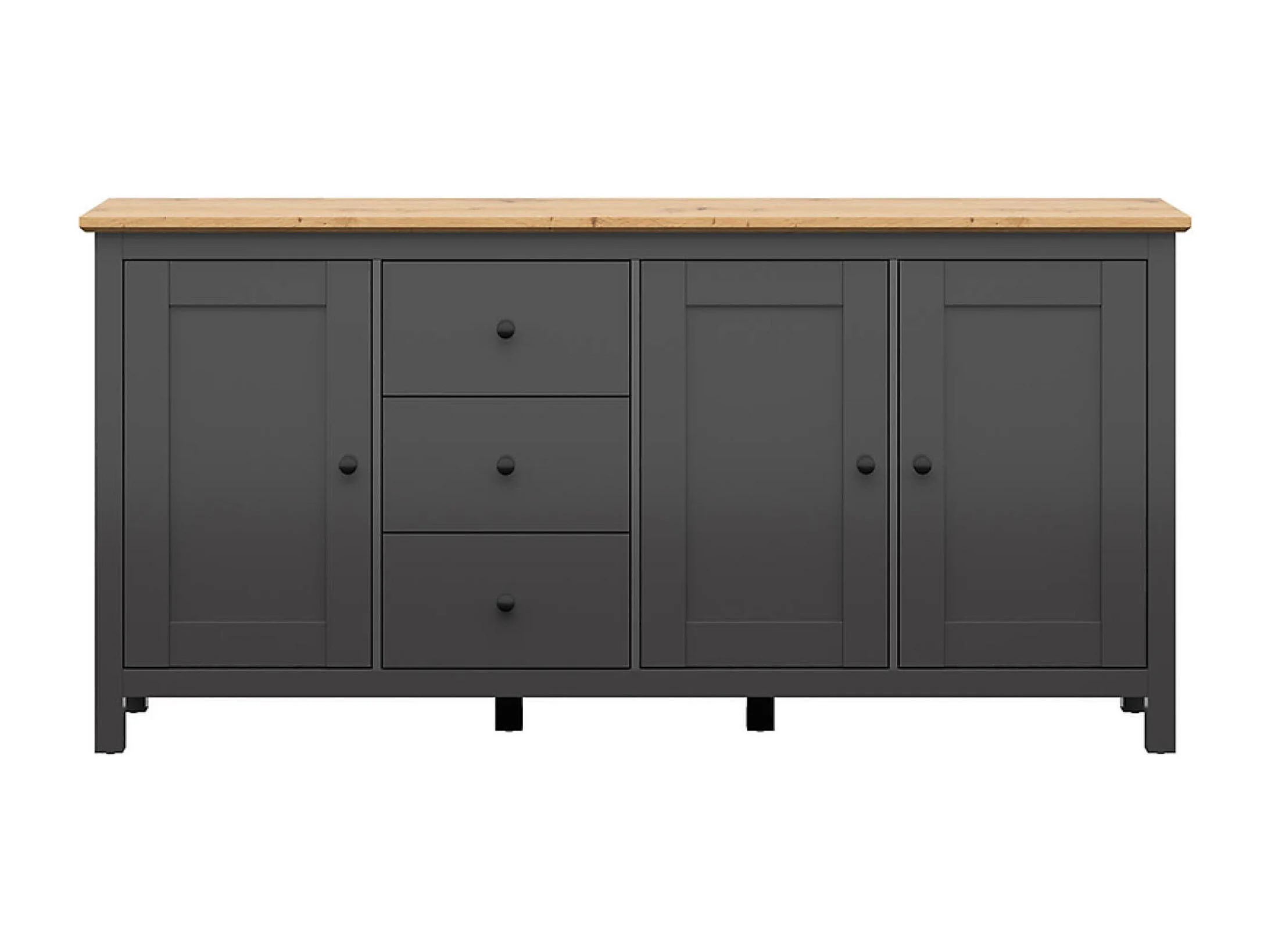 commode Buffet à 3 portes et 3 tiroirs, coloris Gris graphite/Chêne artisan - Longueur 199 x Profondeur 44 x Hauteur 96 cm
