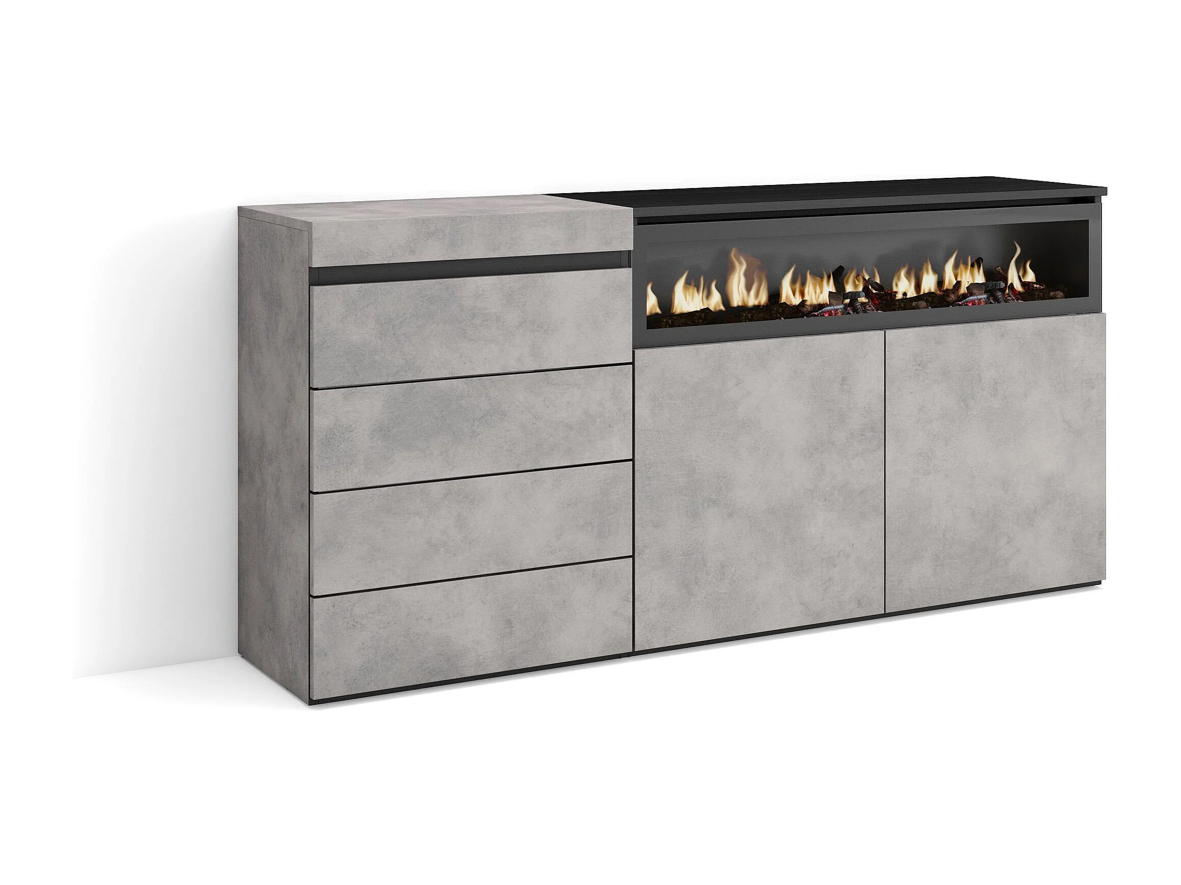 Commode, Buffet, Armoire, 135x57x75 cm, Chambre à coucher, pièce, Cheminée électrique, Ciment