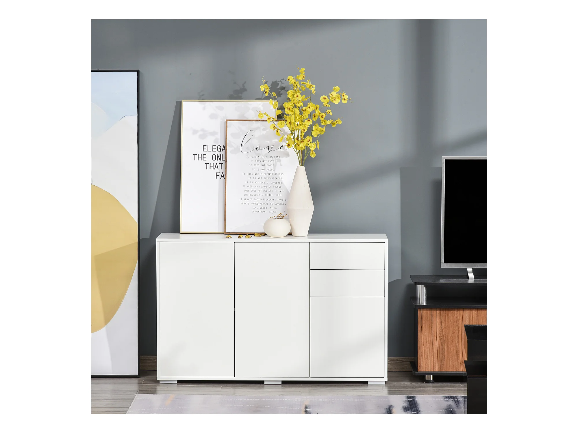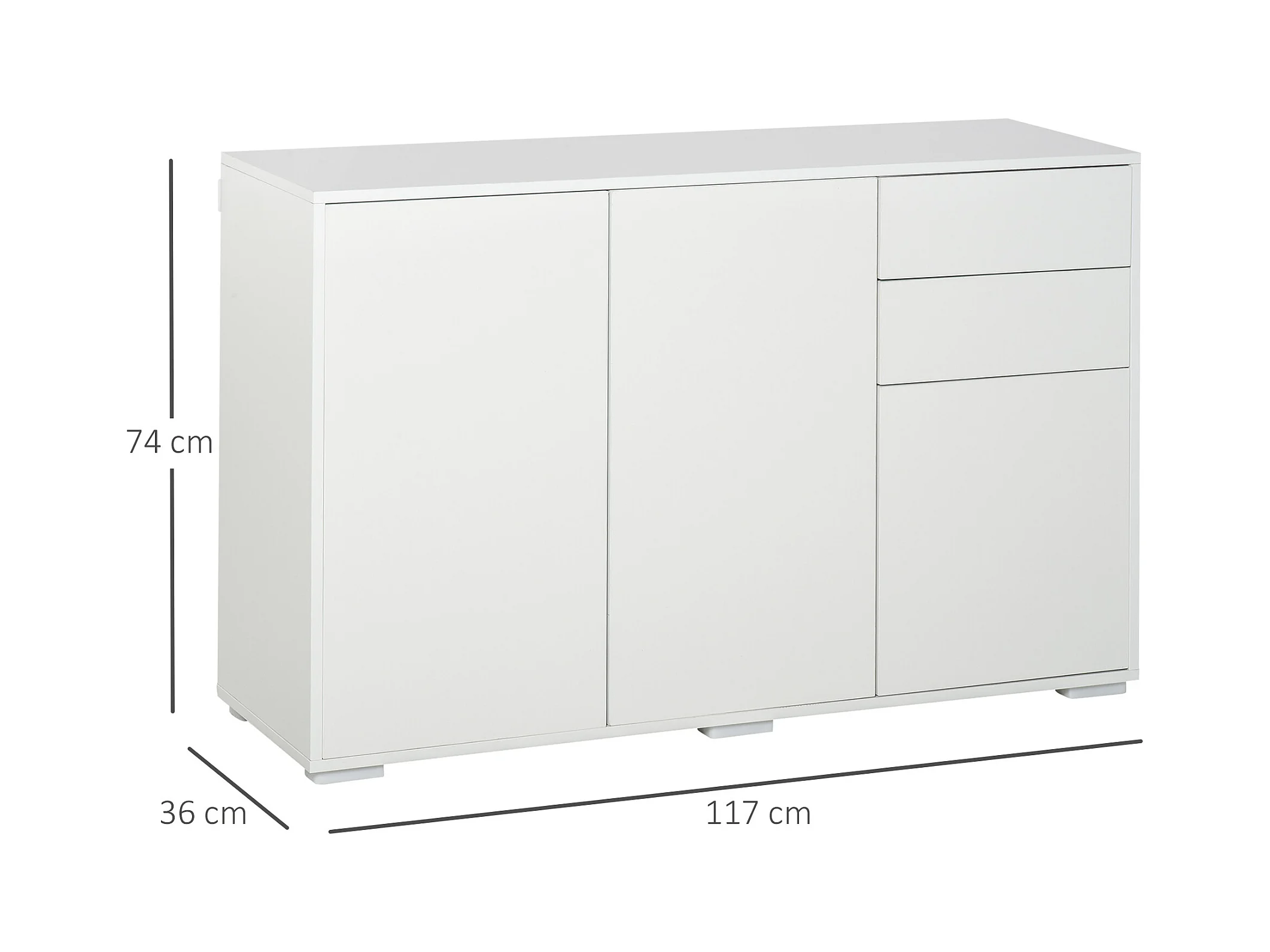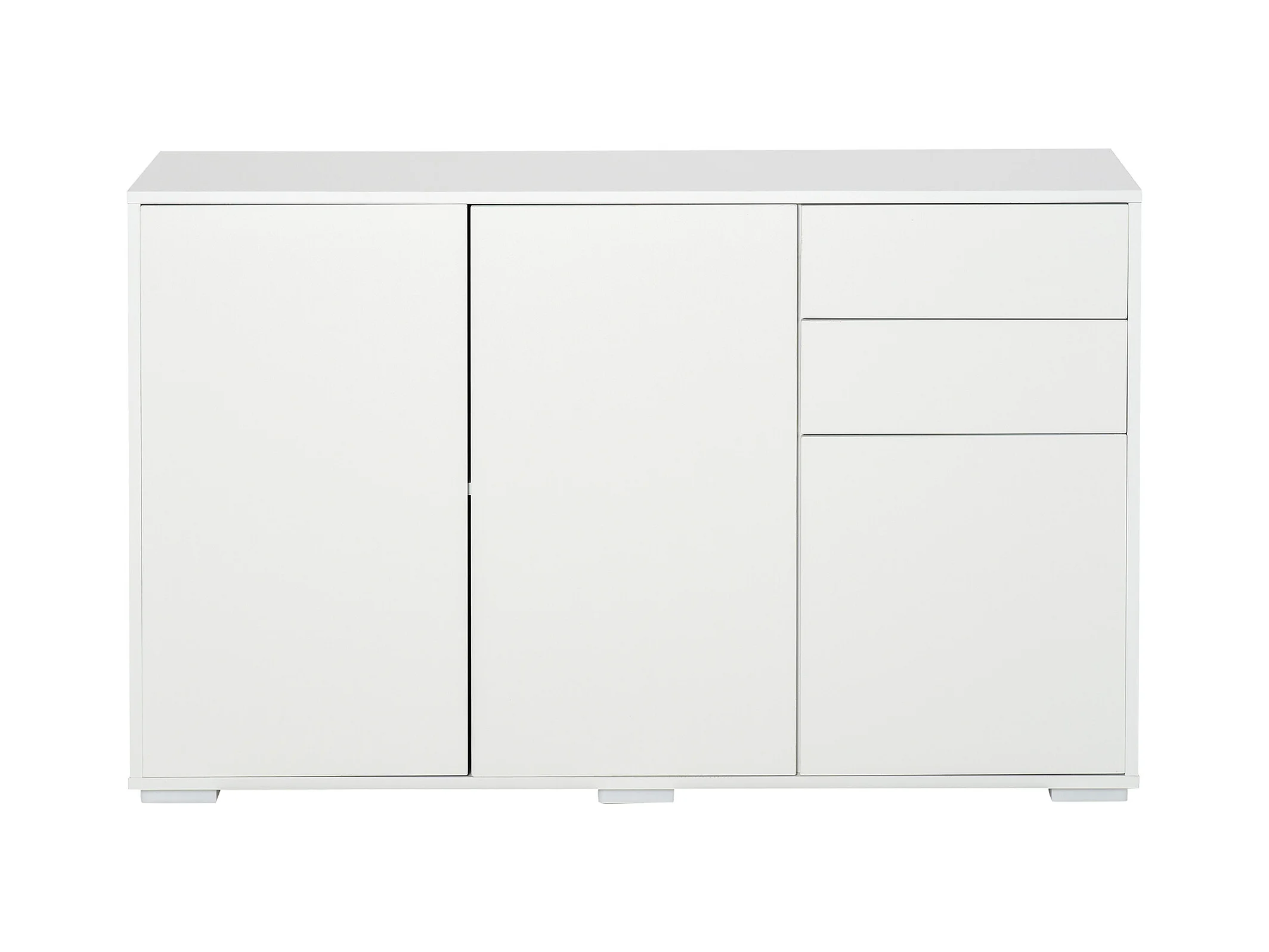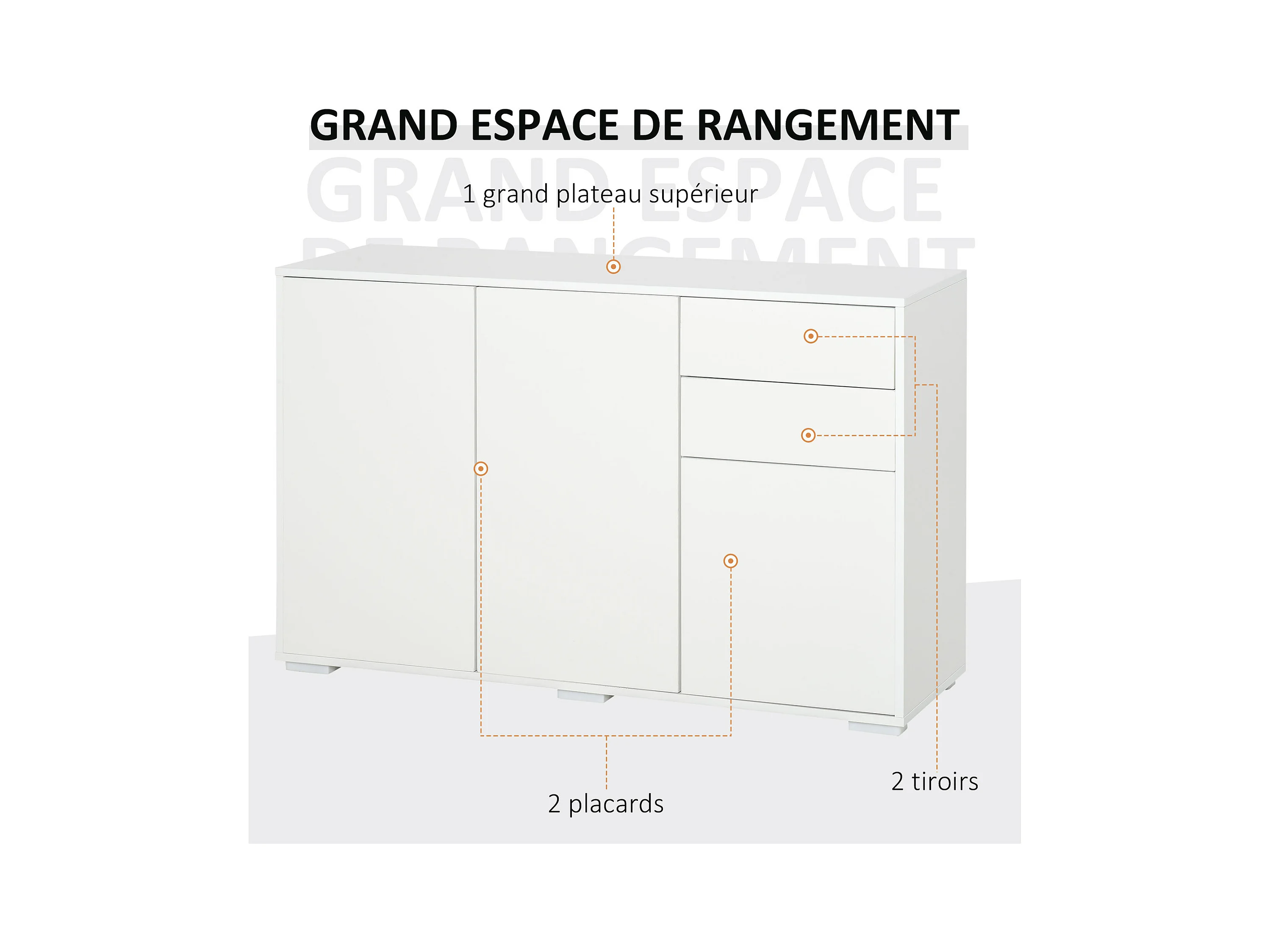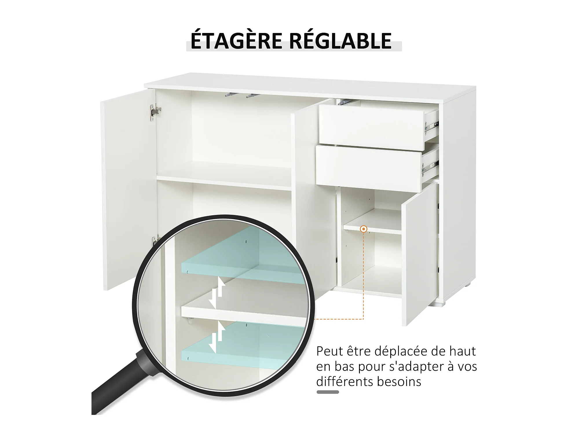 Commode buffet de rangement 2 tiroirs coulissants 3 portes étagère réglable panneaux de particules 117 x 36 x 74 cm blanc