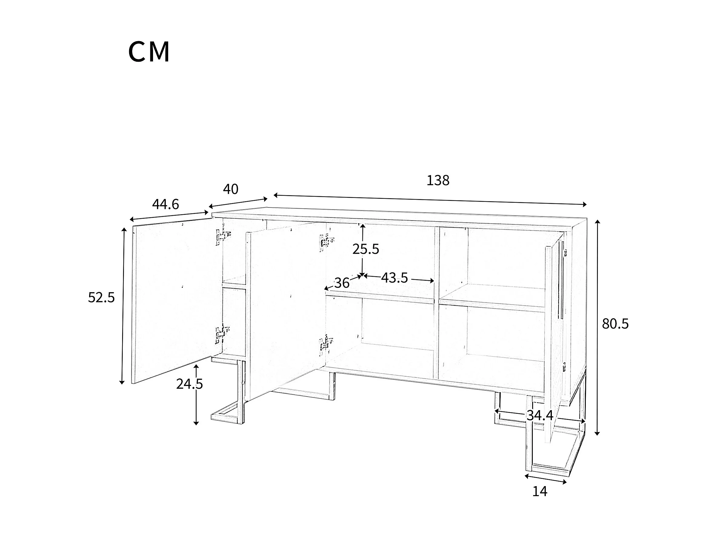 URBAN MEUBLE Commode buffet haut avec 3 portes blanc motif de forme U H81/B138/T40