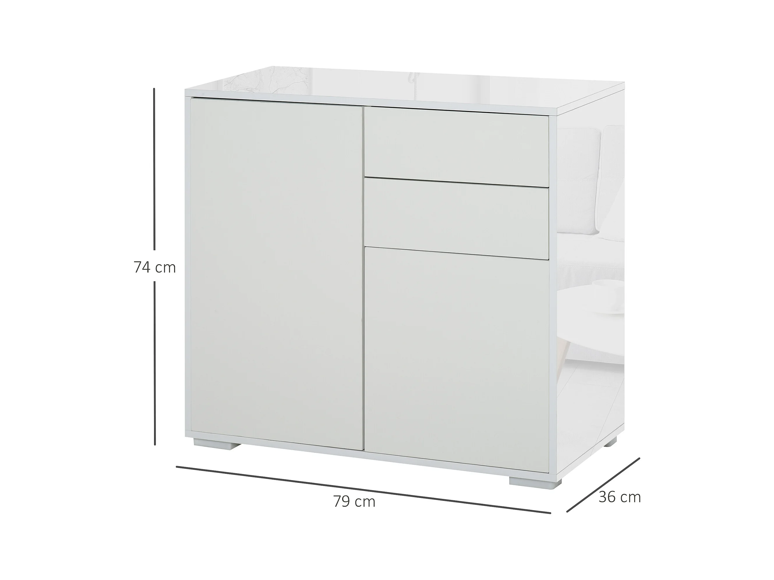 Commode buffet meuble de rangement 2 tiroirs 2 portes avec étagère 79 x 36 x 74 cm blanc