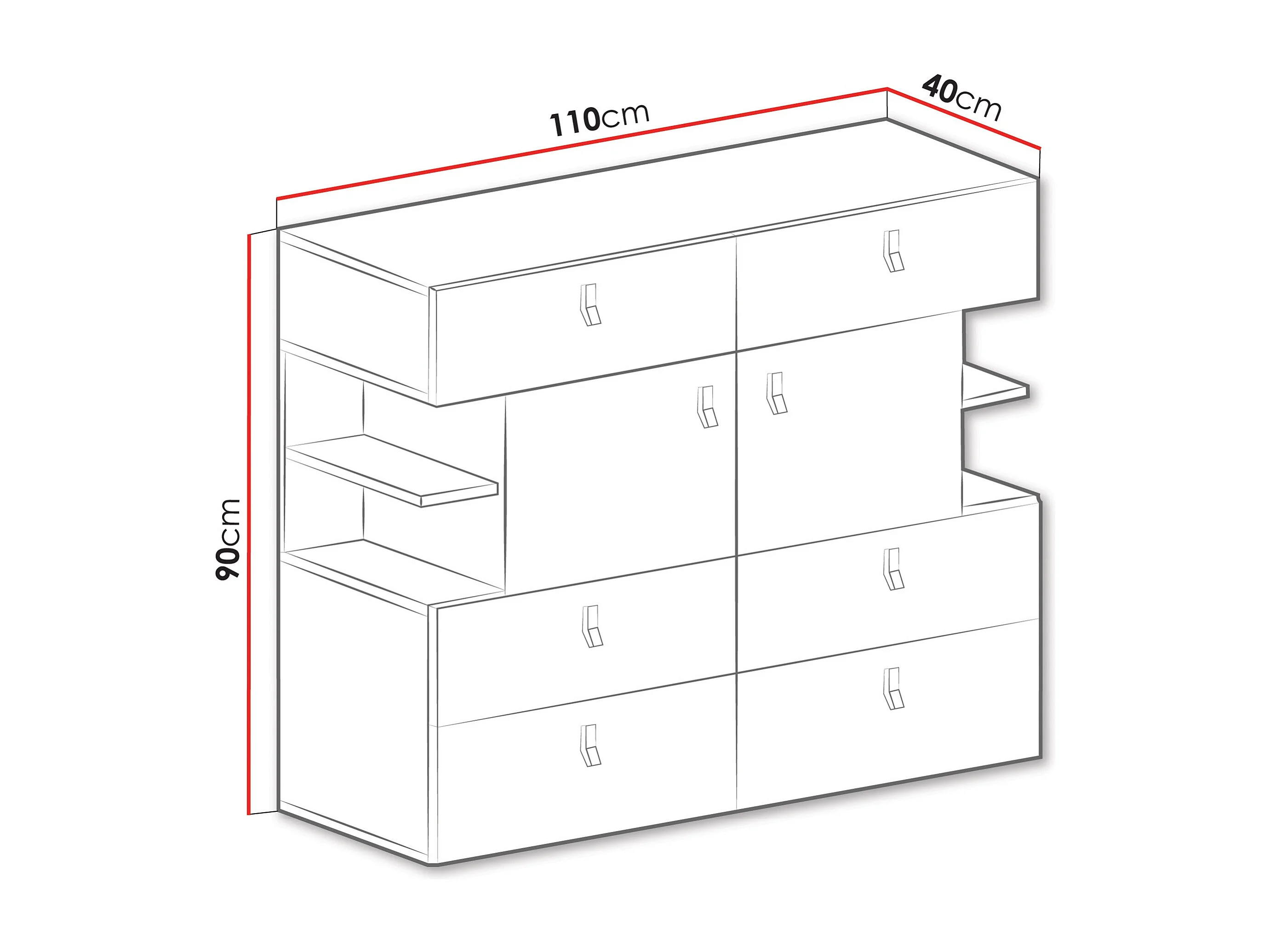 Commode Camteso 106, Beige|Chêne|Noir, Tiroirs et portes, Nombre de tiroirs: 6, 90x110cm