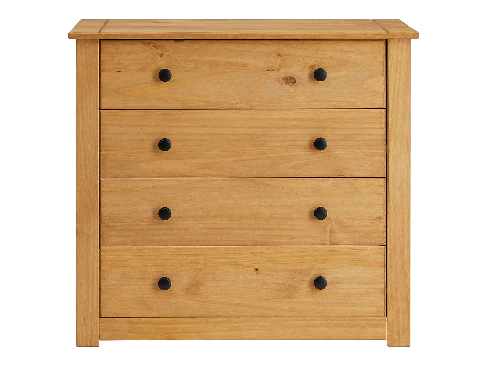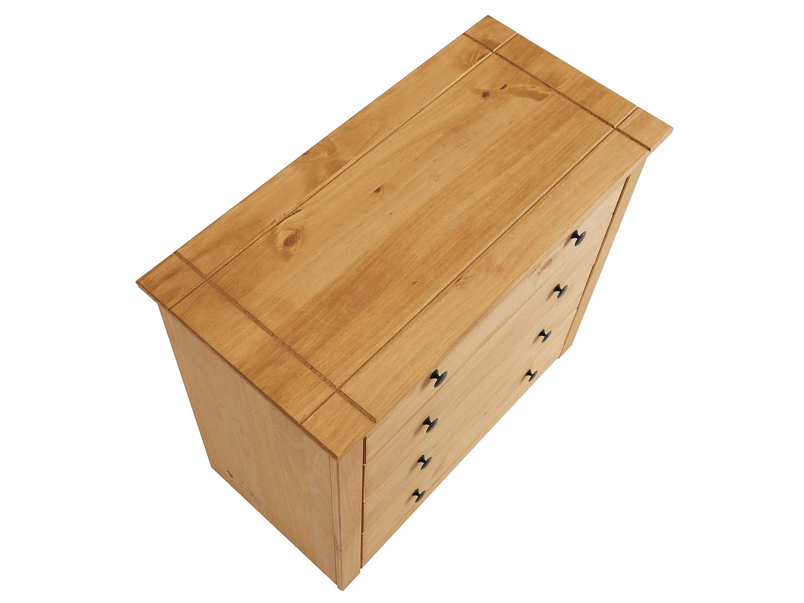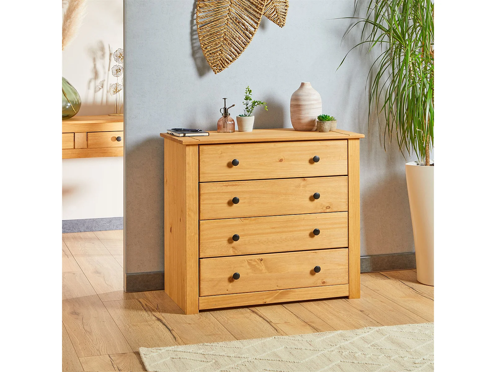 Commode CANCUN buffet avec 4 grands tiroirs, en pin massif à la finition teintée et cirée