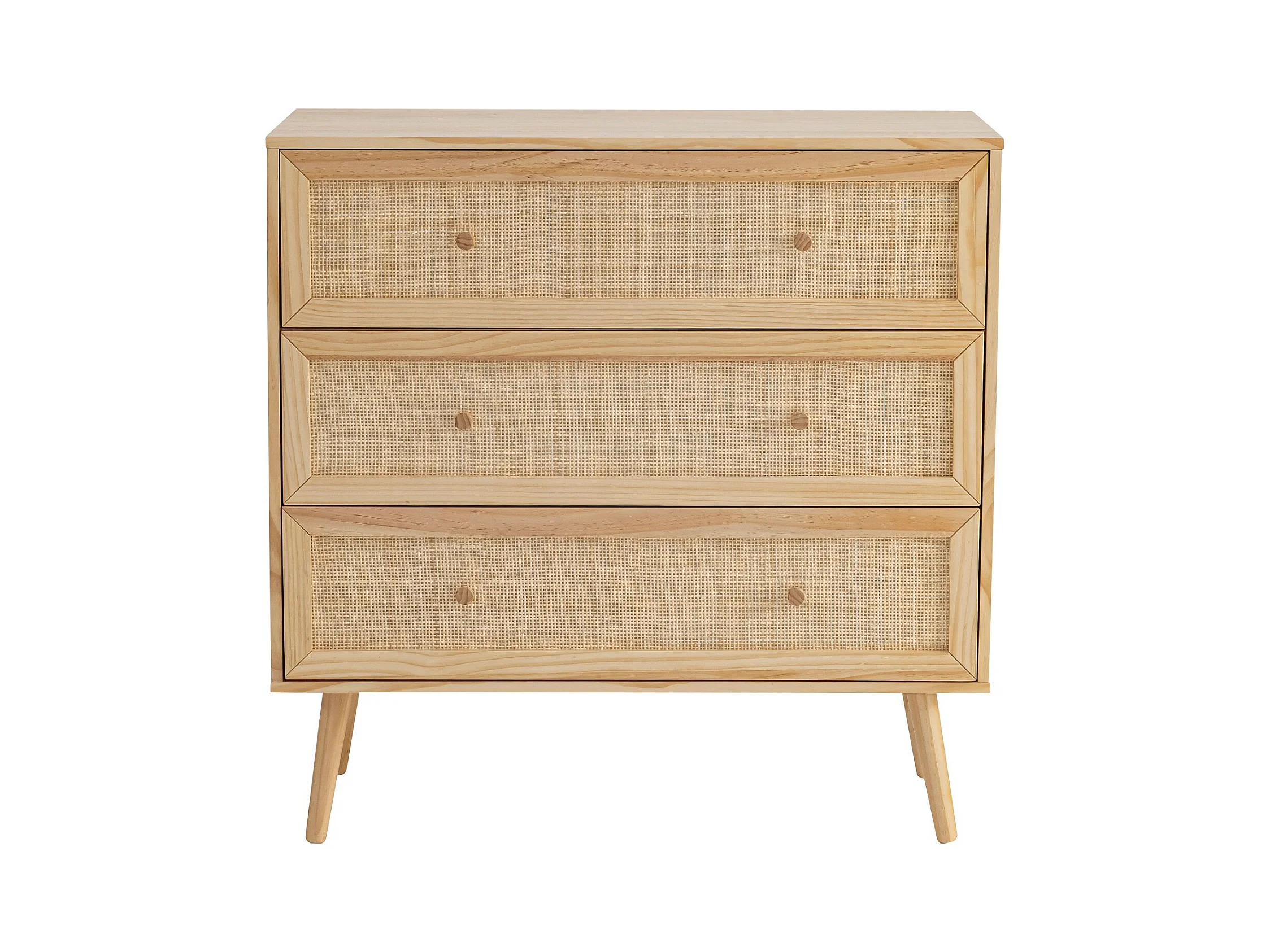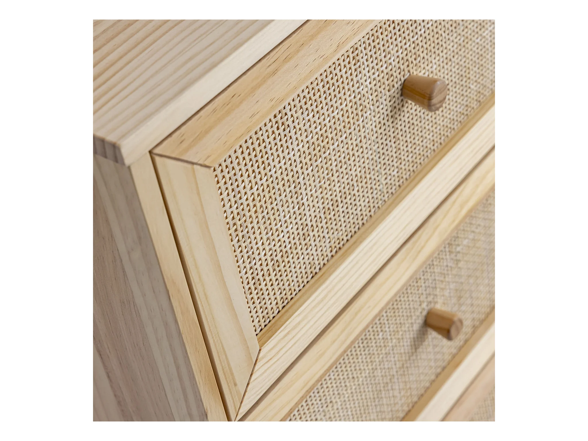 Commode cannage avec 3 tiroirs bois naturel ANNA - ANNA