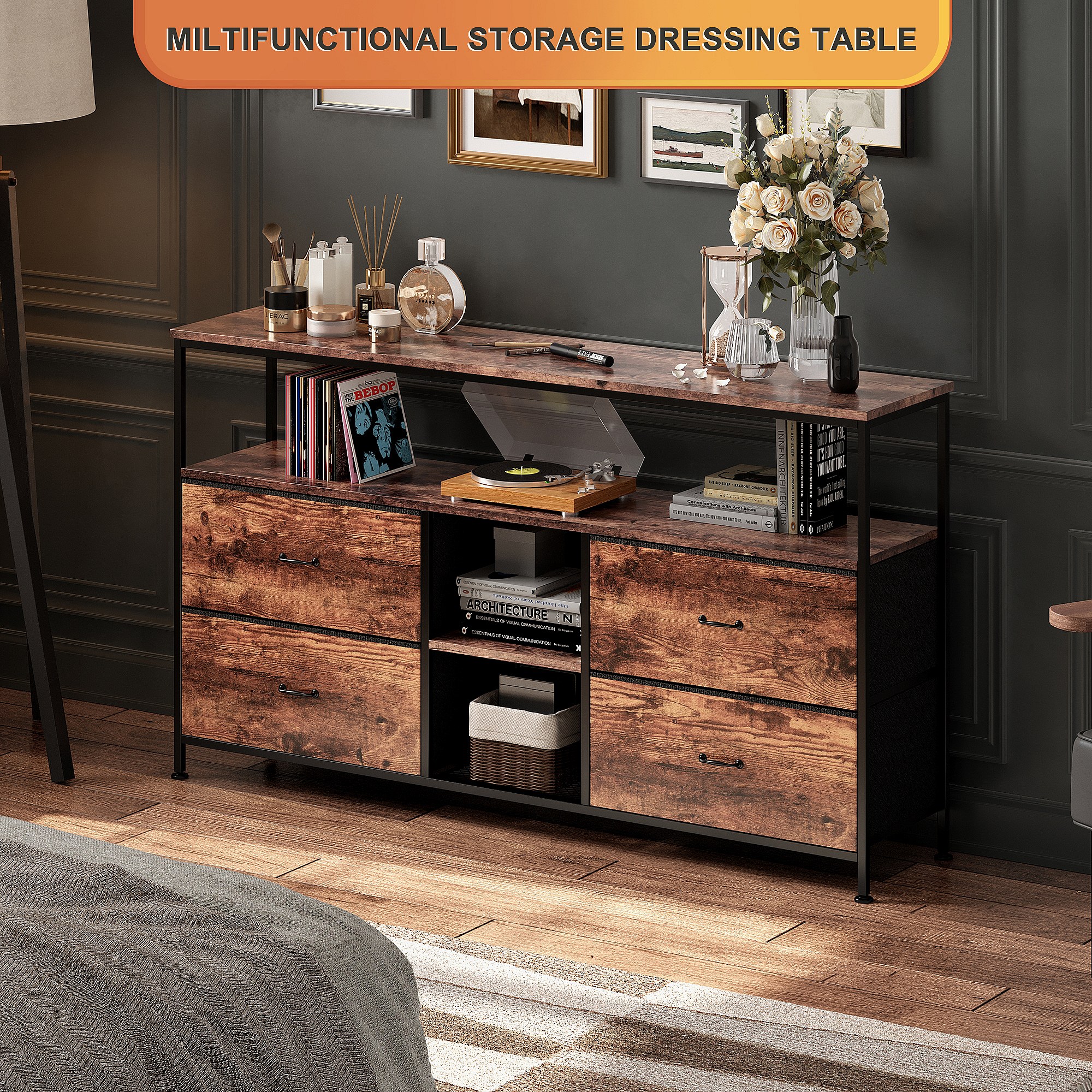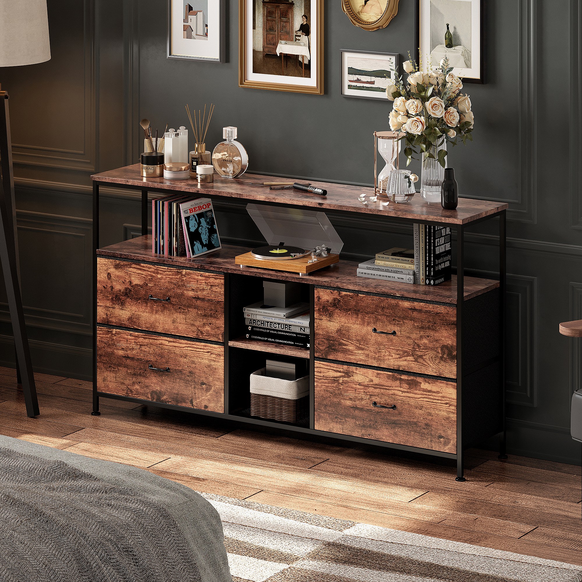 Commode Chambre avec LED& 3 Tiroirs, Armoire à tiroirs multifonctionnelle pour Chambre et Salon - Buffet Stable et résistant, 137 * 30 * 78 cm, Marron Rustique