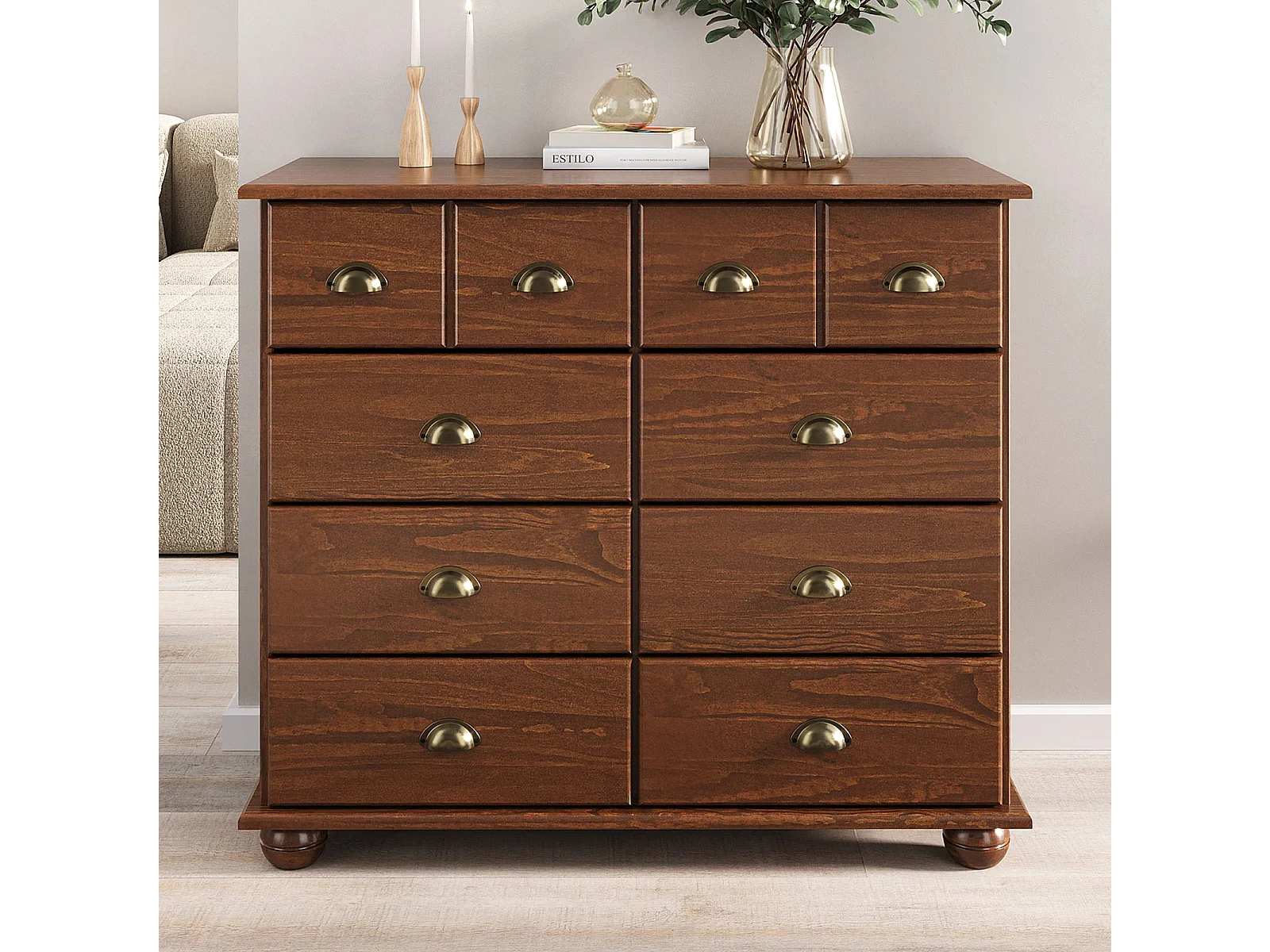 Commode chambre COLMAR L 92 cm 8 tiroirs en bois massif brun foncé chiffonnier apothicaire rangement avec poignées en métal