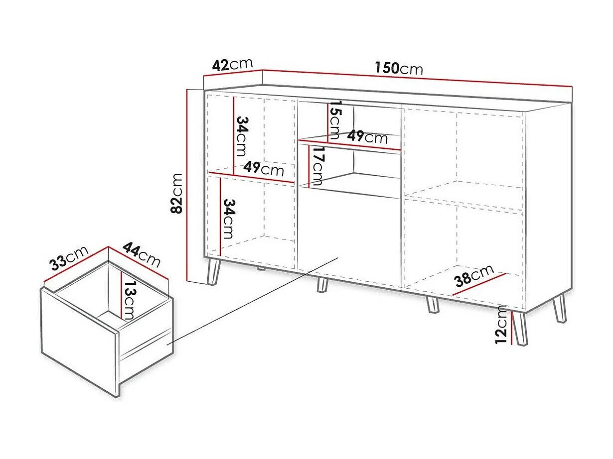 Commode Charlotte 143, Noir brillant|Noir, Tiroirs et portes, Nombre de tiroirs: 1, 82cm
