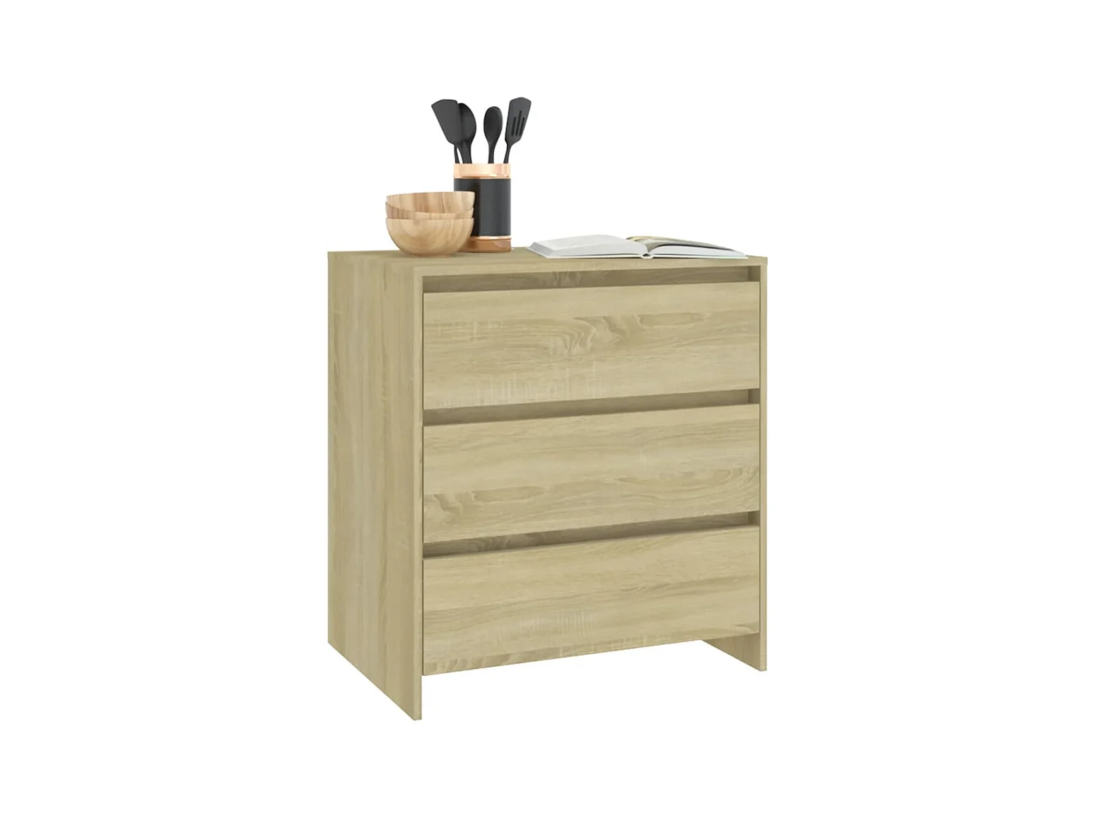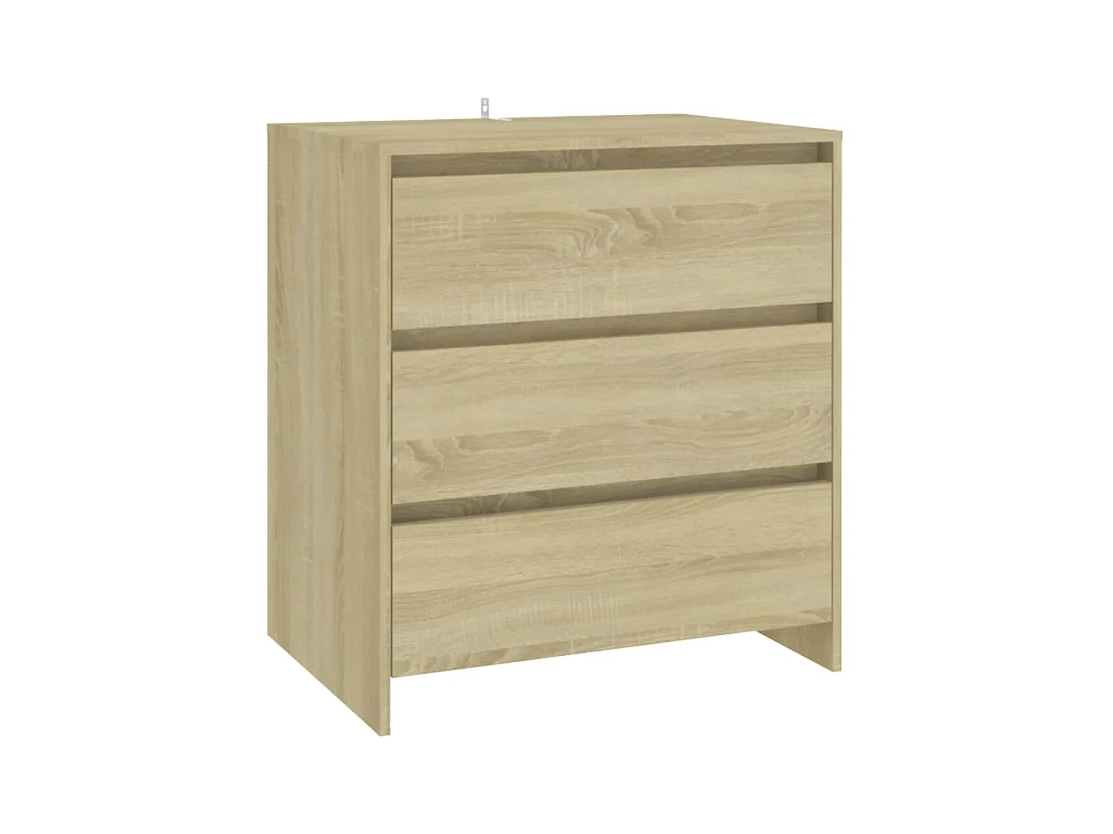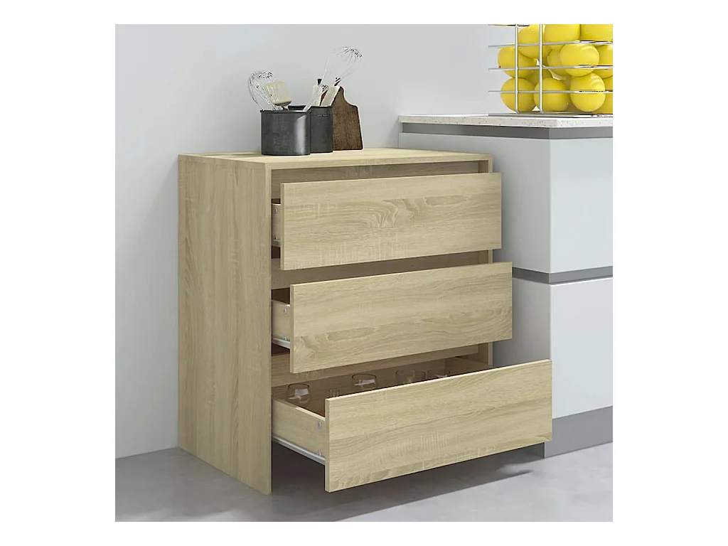 Commode 3 tiroirs Dovany L70xH56xP41 - Bois et métal-Couleur Chêne clair