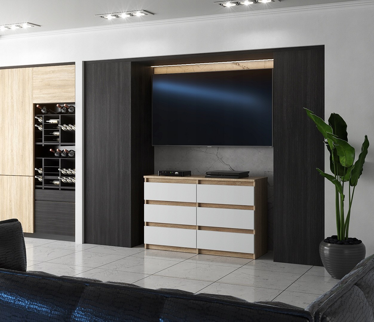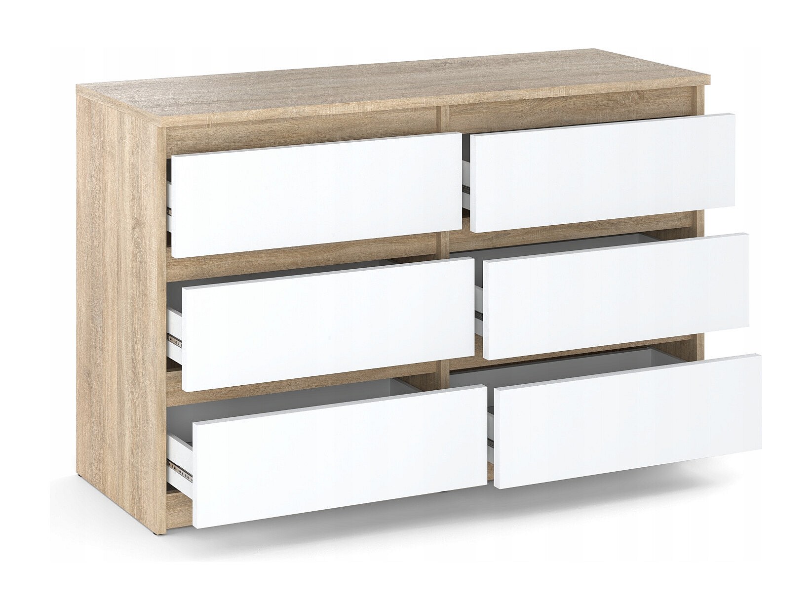 Commode Chêne Sonoma/Blanc 6 tiroirs 100x71,5X33,5CM Meuble TV- Salon - chambre -chifonnier