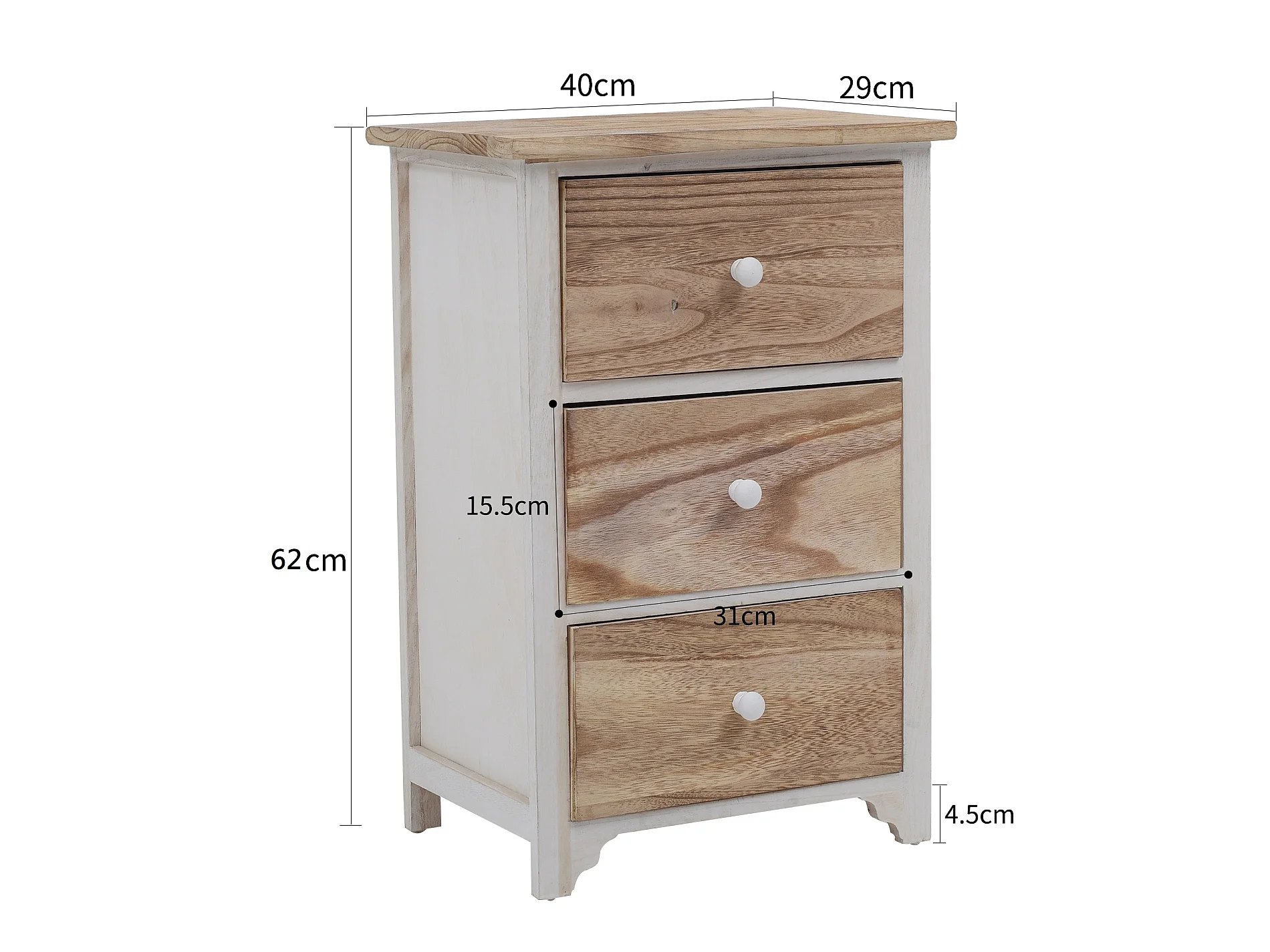 Commode Chevet 4 Tiroirs Bois Blanc Marron Shabby 62x40x29