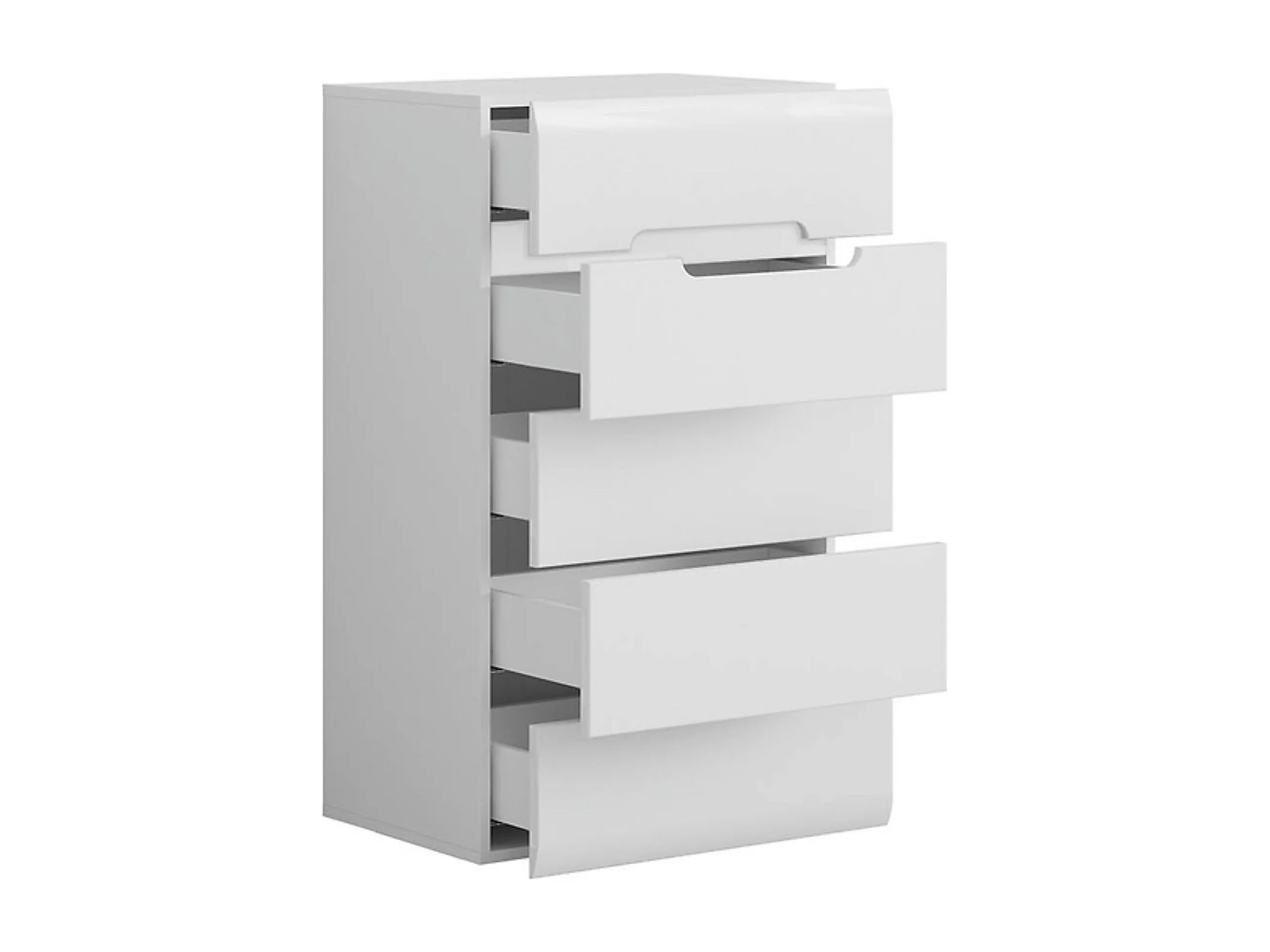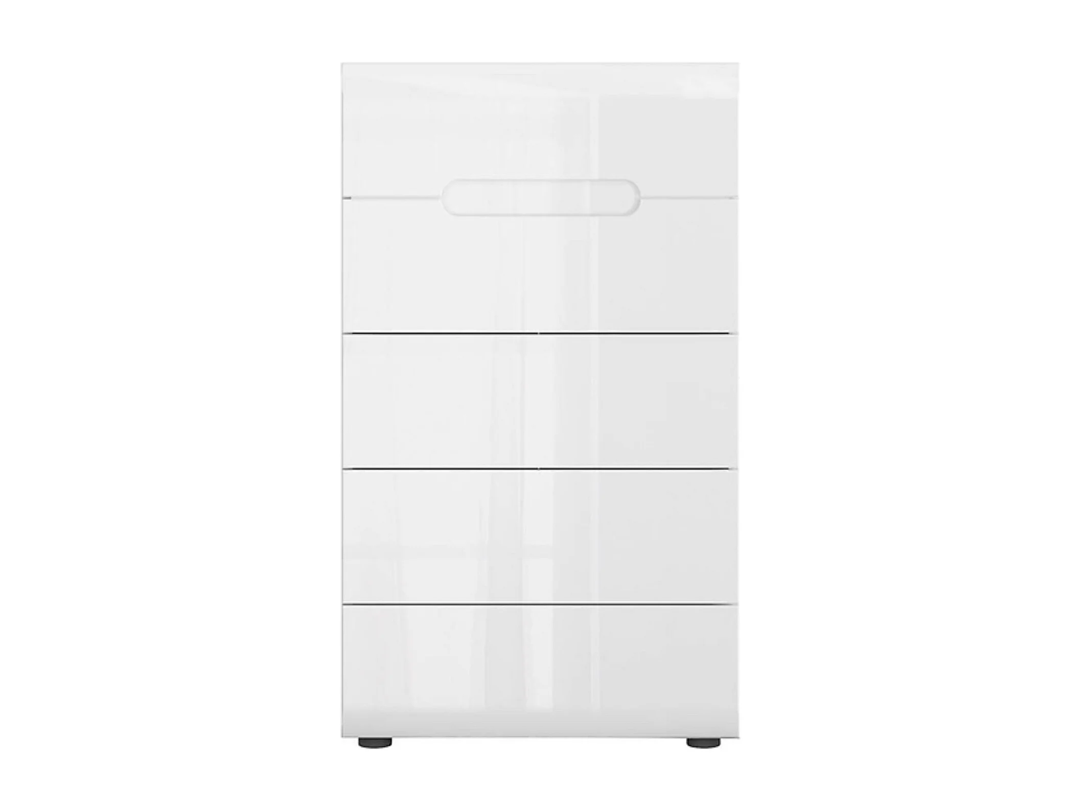Commode Chiffonnier à 5 tiroirs , coloris Blanc/Blanc haute brillance - Longueur 60 x Profondeur 41 x Hauteur 104 cm