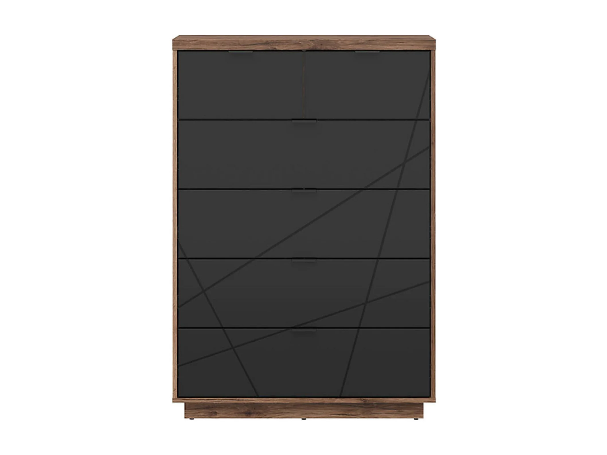 Commode Chiffonnier à 6 tiroirs , coloris Chêne delano / Noir mat - Longueur 90 x Profondeur 42,5 x Hauteur 130,5 cm