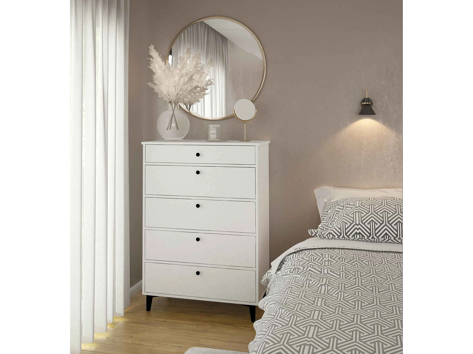 Commode Chiffonnier Meuble de rangement avec 5 tiroirs coloris Blanc - Hauteur 115 x Longueur 82 x profondeur 48 cm