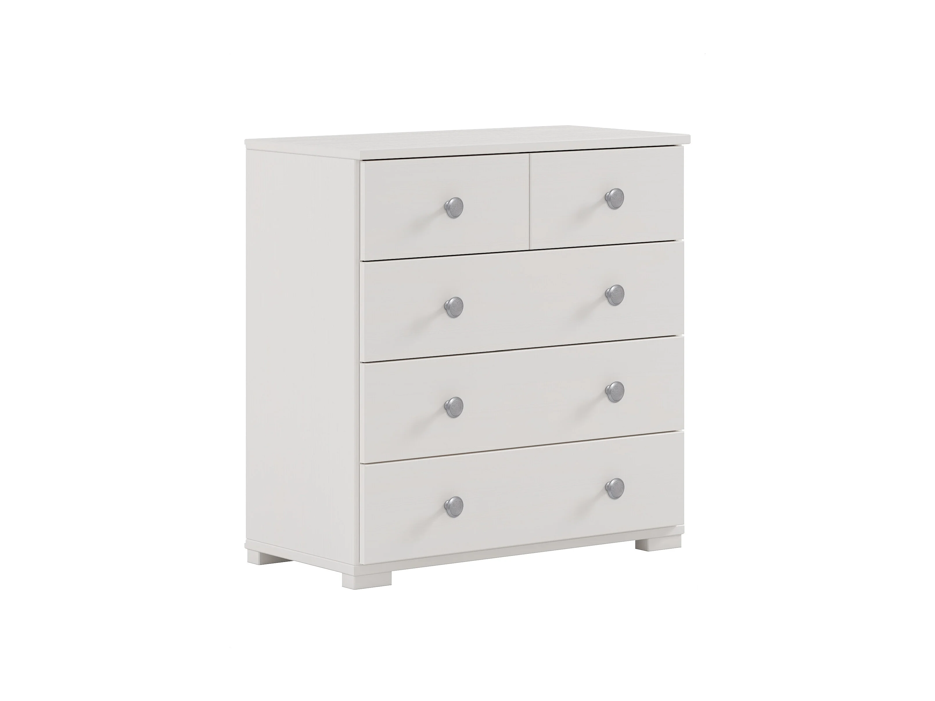 Commode Chiffonnier Meuble de rangement avec 5 tiroirs, en pin massif coloris Blanc - Longueur 76 x Hauteur 73,6 x Profondeur 36,5 cm