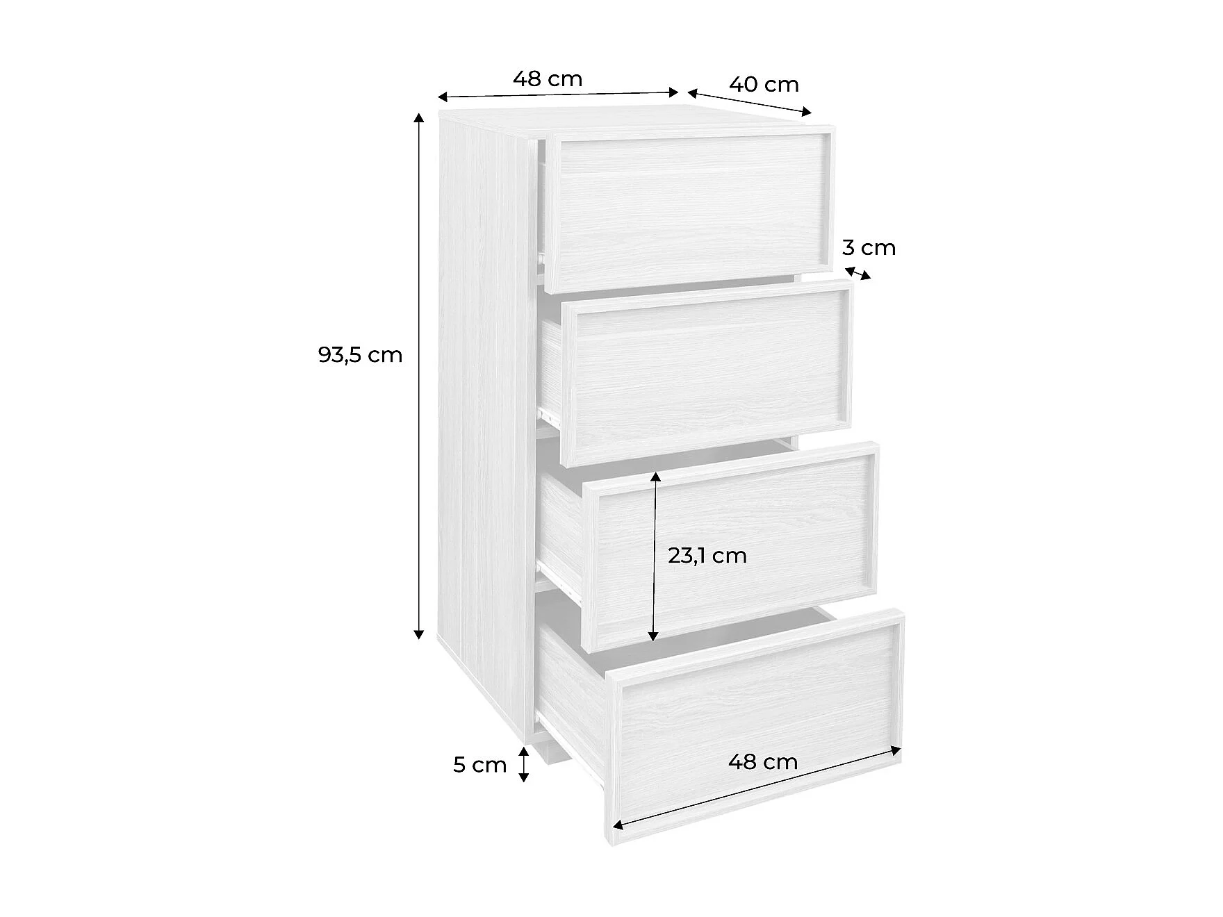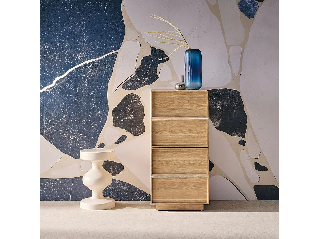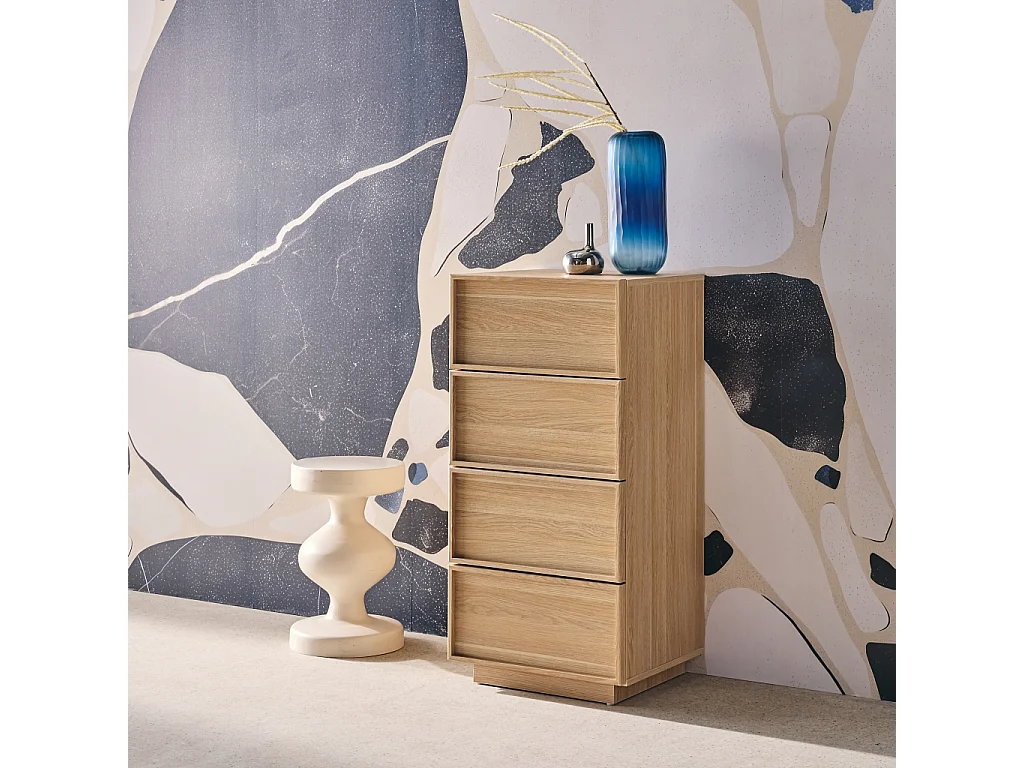 Commode chiffonnier naturel 4 tiroirs effet bois - L 48 x P 43 x H 98.5cm - Kuba