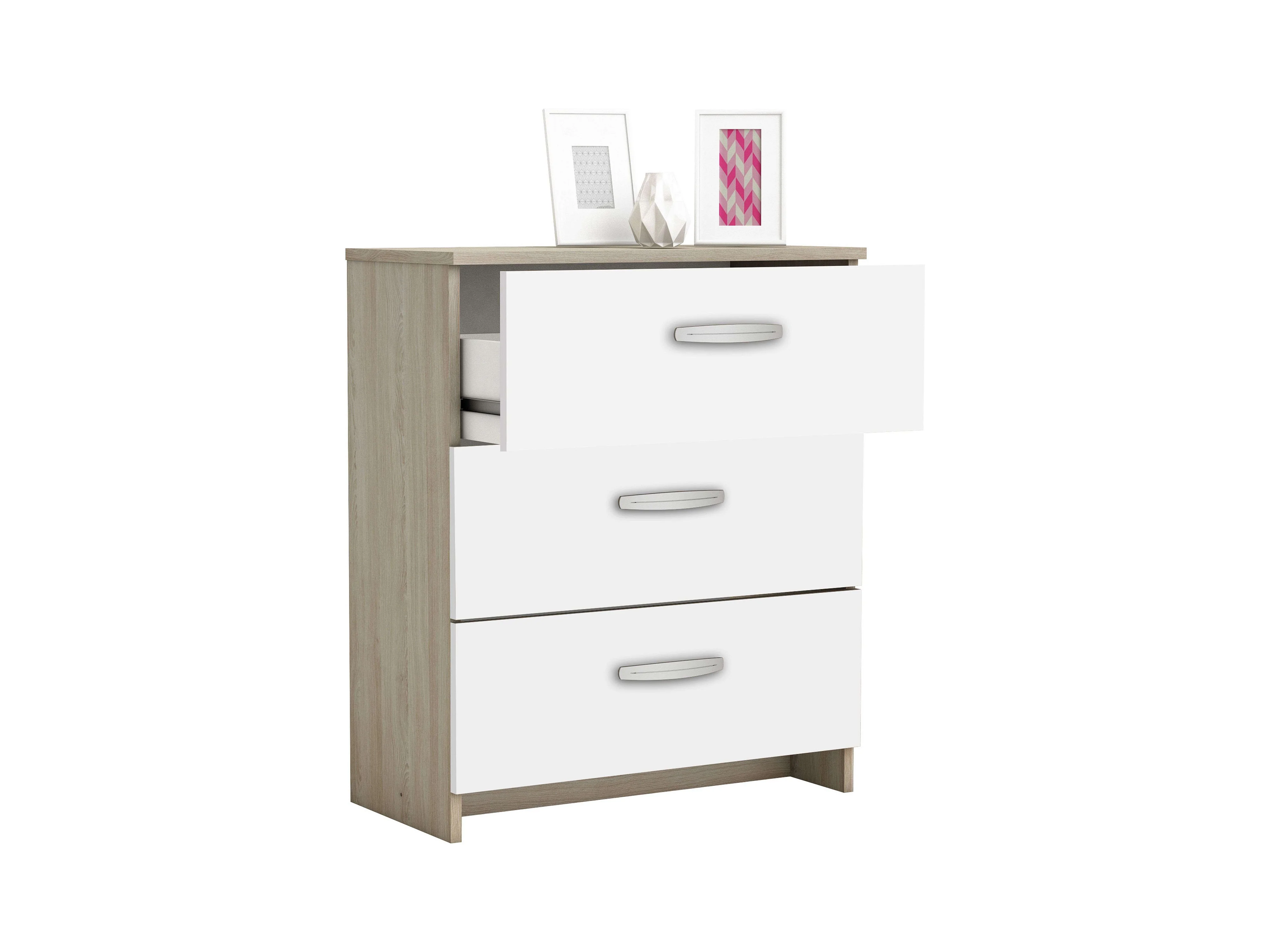 Commode de chambre Tibet Chêne Cambrian/Mélamine blanche 110x40x40 cm