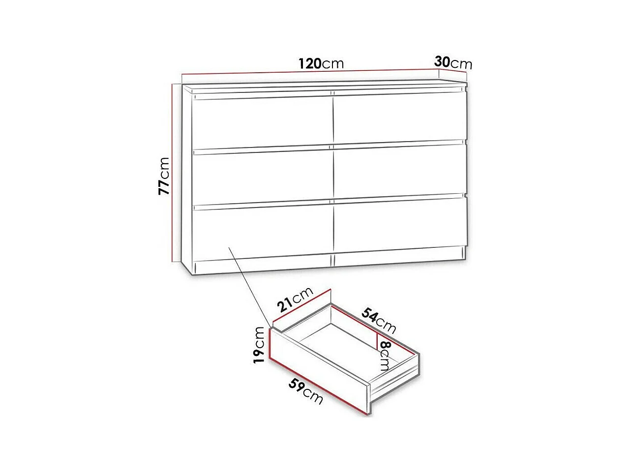 Commode Comfivo 186, Blanc, Avec tiroirs, Nombre de tiroirs: 6, 77x120x30cm