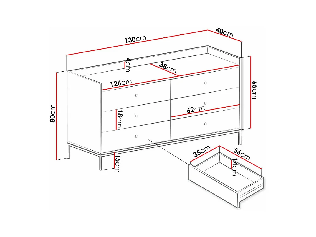 Commode Comfivo Etmore 101, Gris, Avec tiroirs, 80x130x40cm