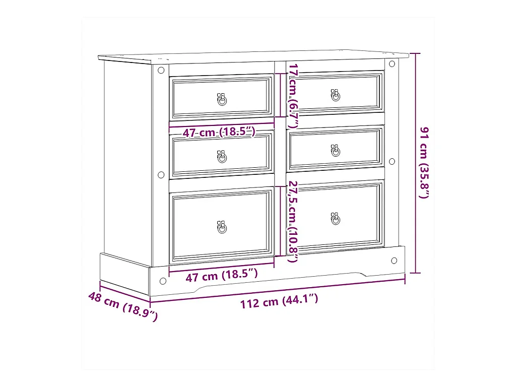 Commode Corona 120x48x91 cm bois massif de pin