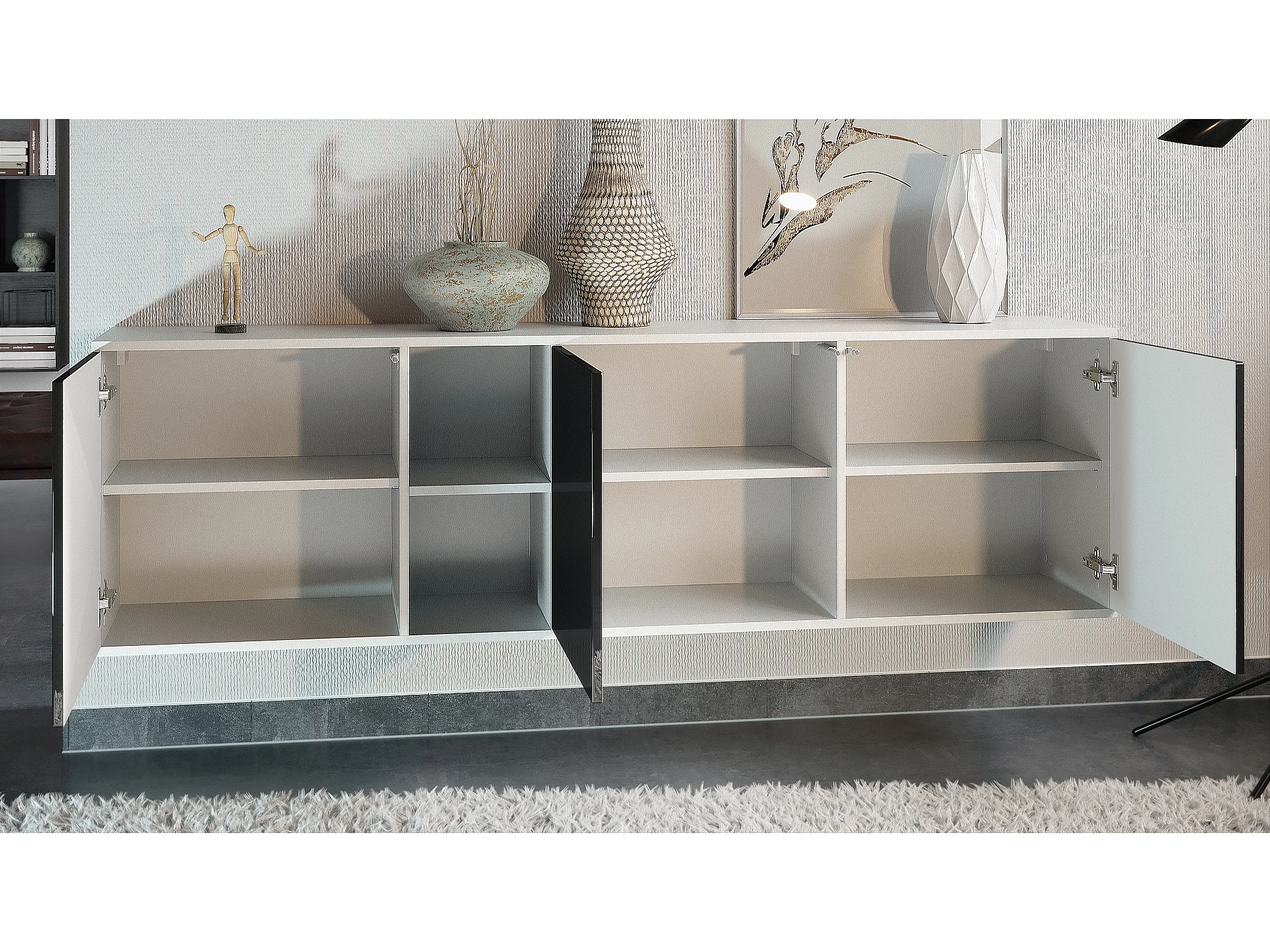 Commode Cuba - blanc mat/noir haute brillance y compris LED - Buffet moderne pour votre salon - (LxHxP) 182x53x35 cm