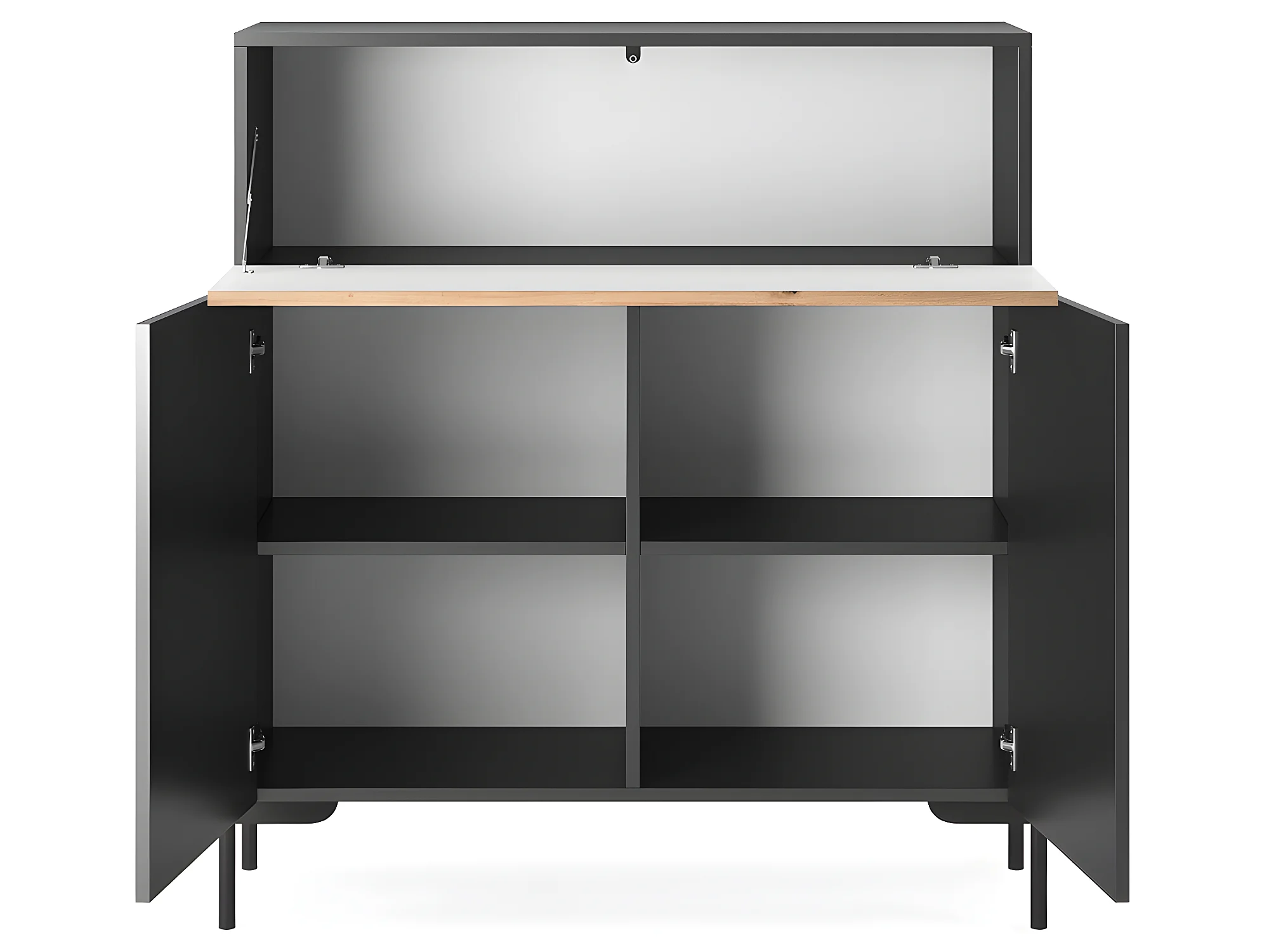 Commode de 92 cm de haut - noir/lattes de chêne - LAMMELO