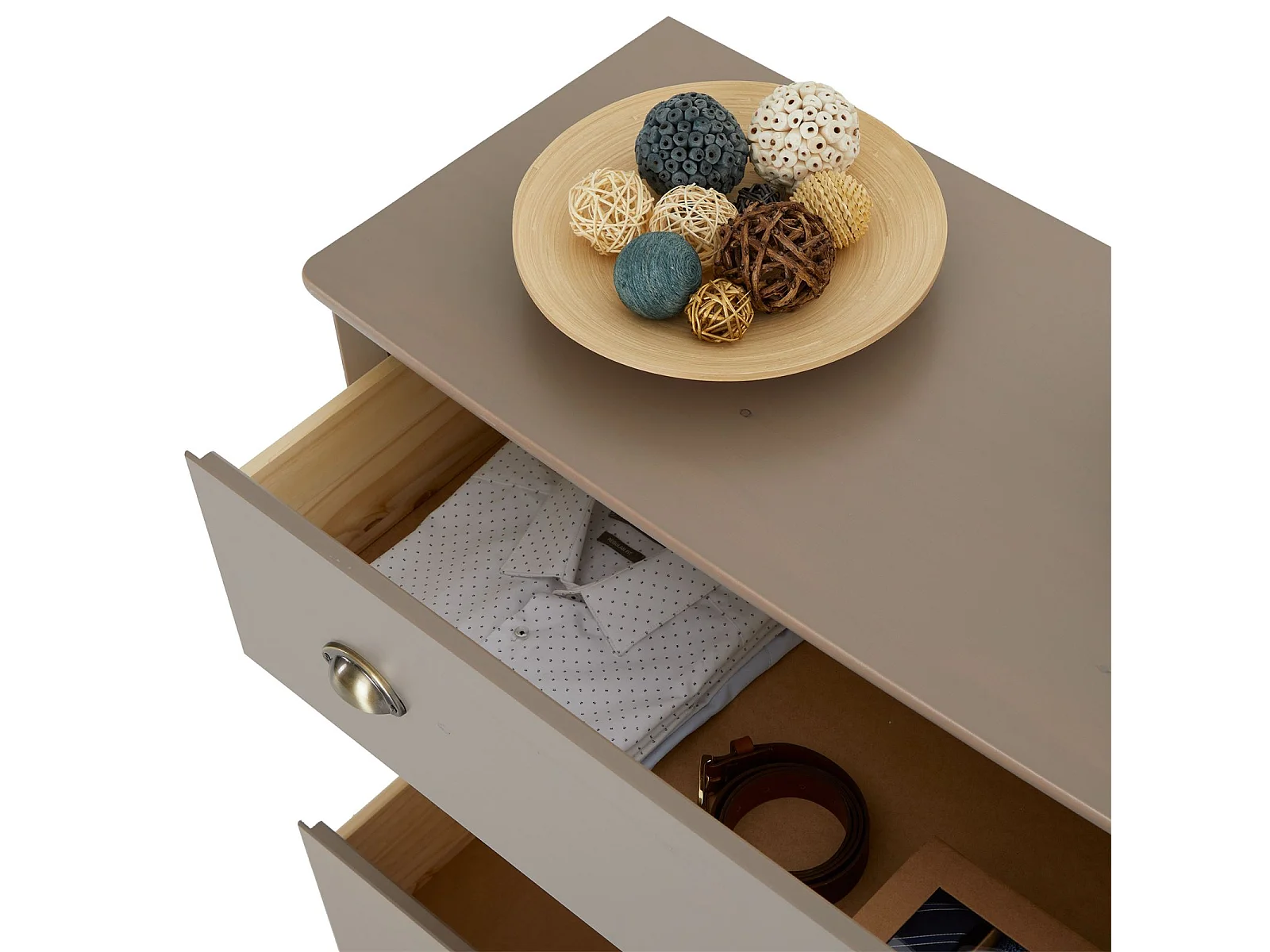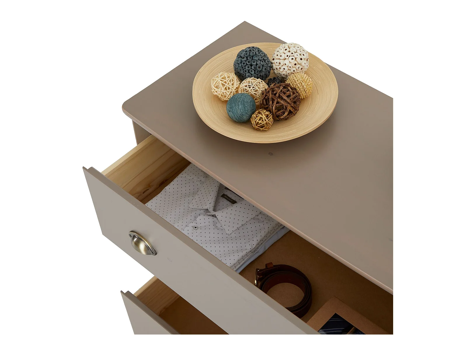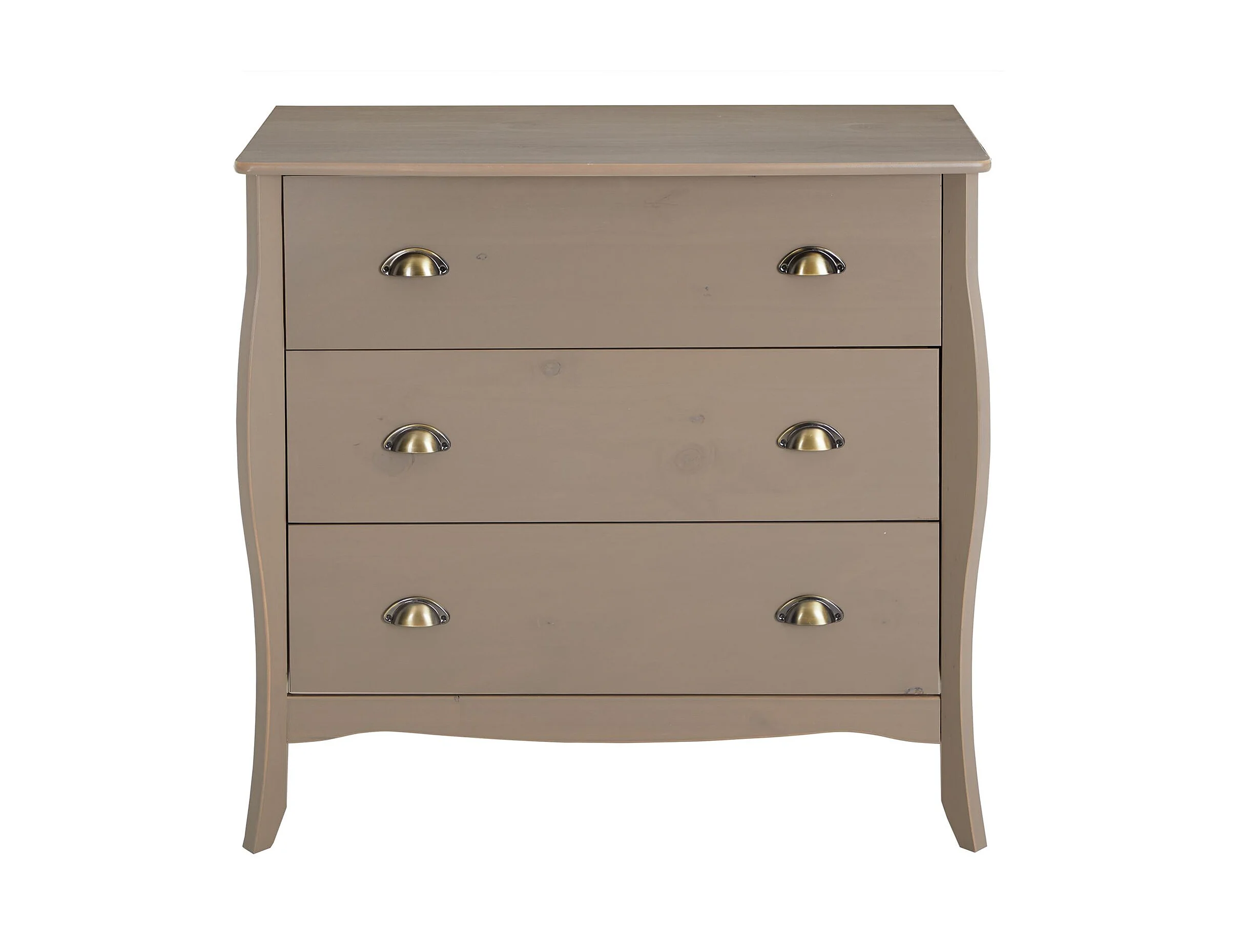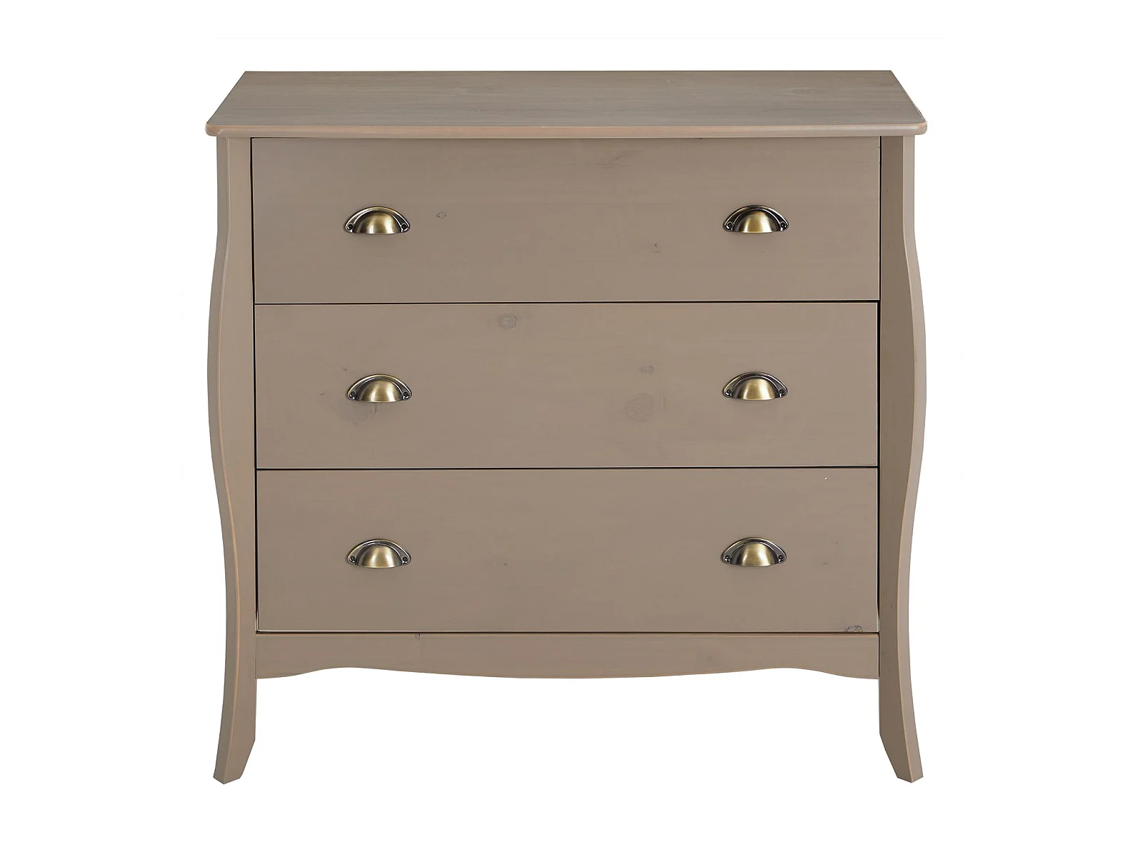 Commode de chambre ANTOINETTE style baroque rococo design moderne, rangement avec 3 tiroirs, en pin massif lasuré taupe