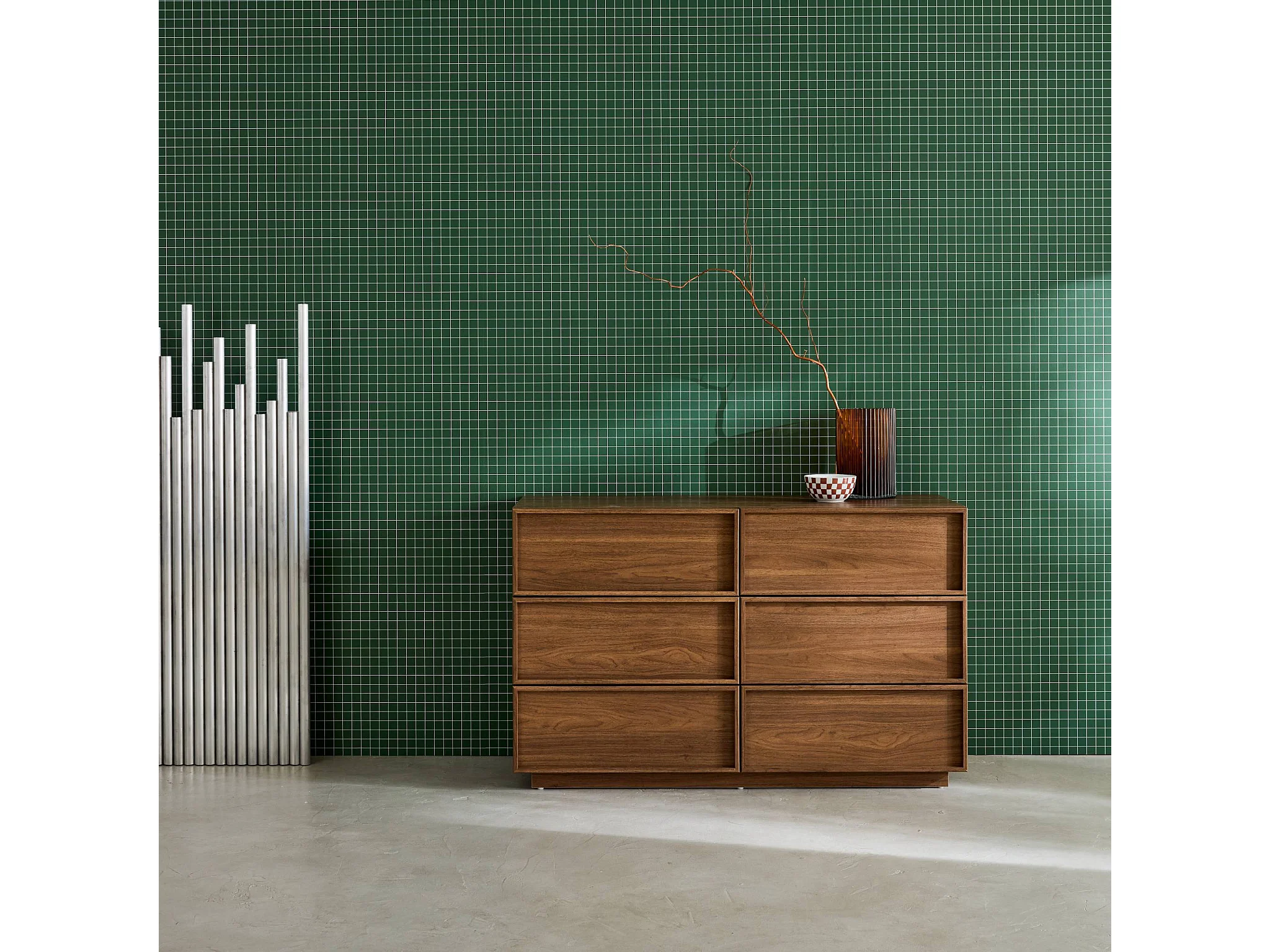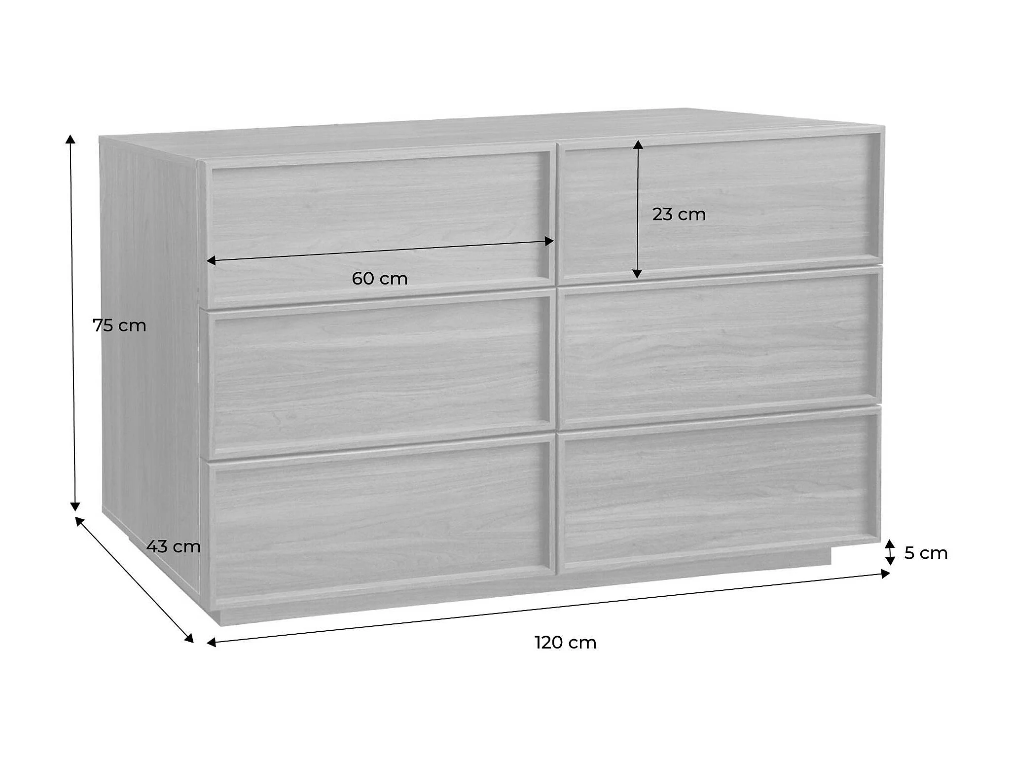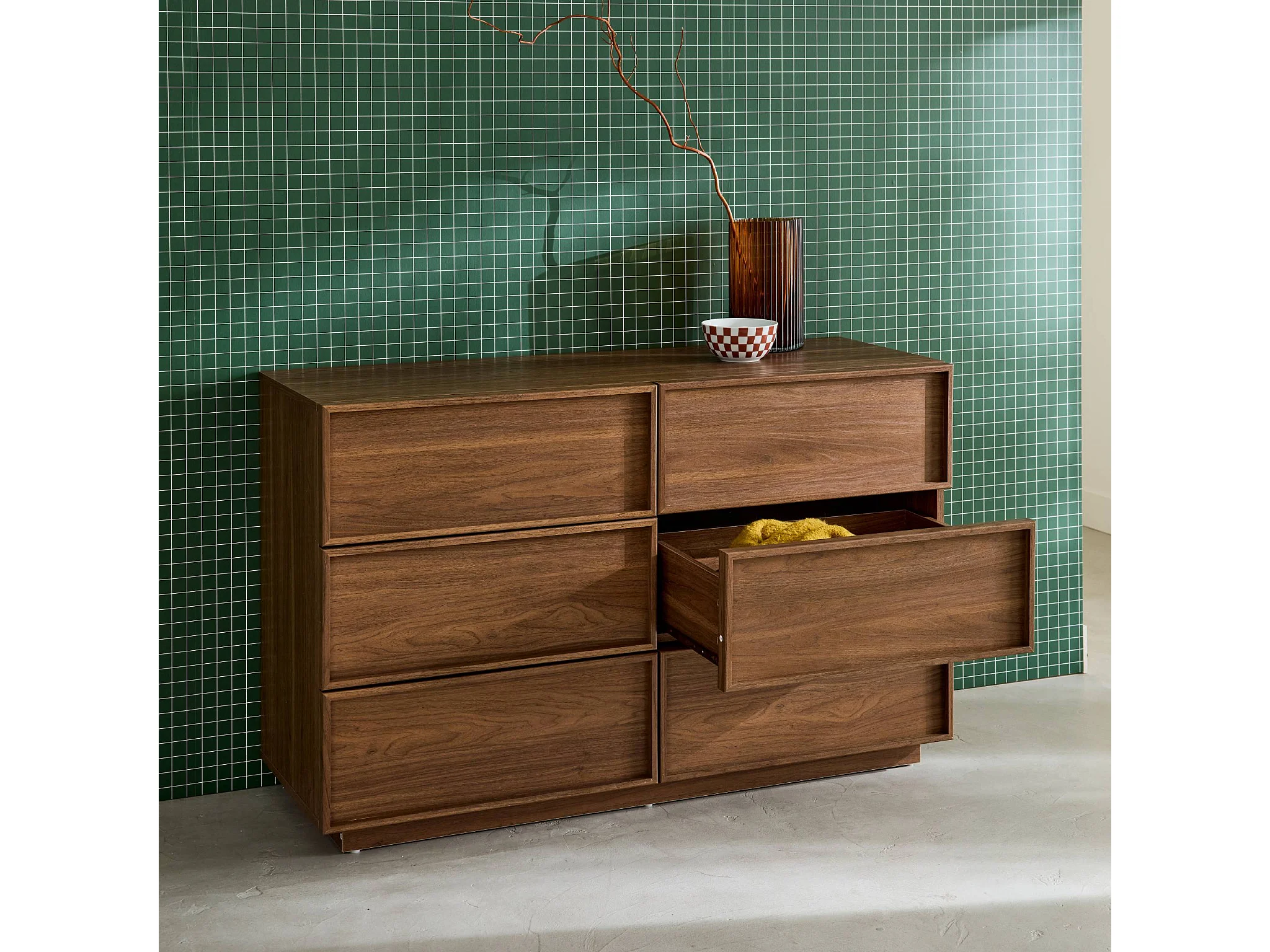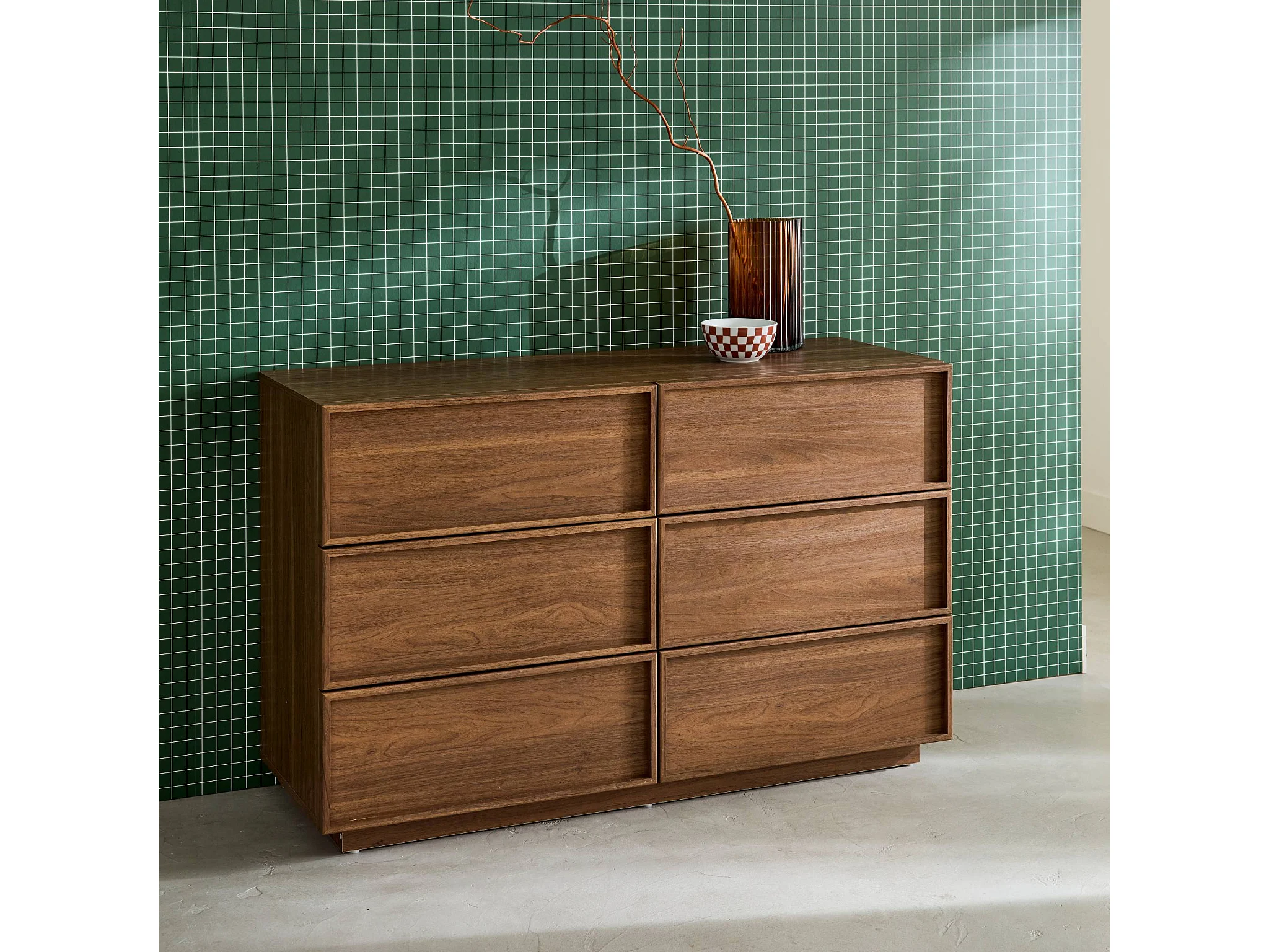 Commode de rangement effet bois 6 tiroirs noyer L 120 x P 43 x H 75cm - Kuba