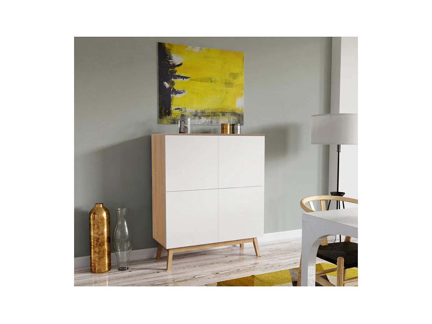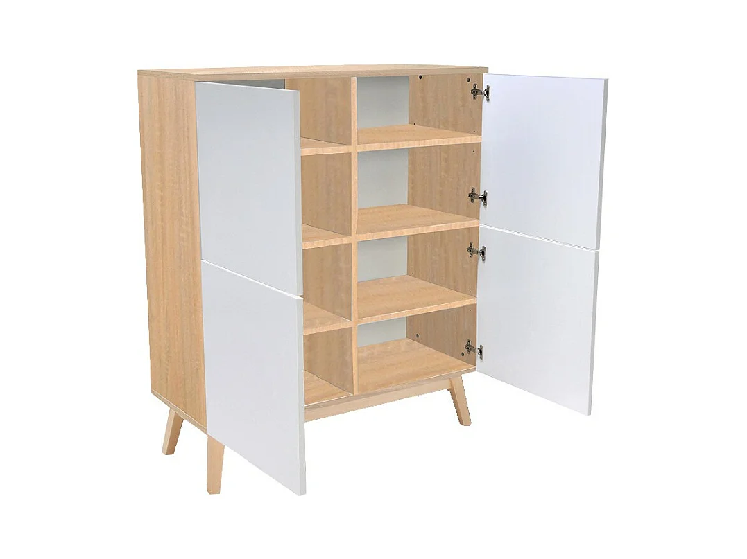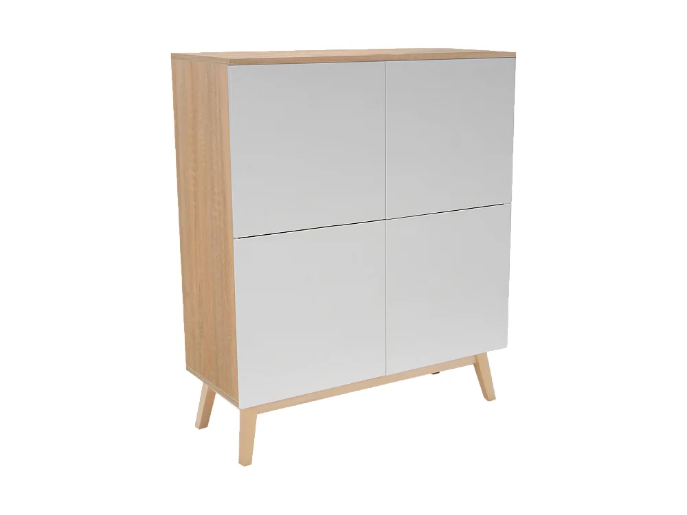 Commode de rangement Meuble universel 100x42x120cm Blanc et chêne avec 4 portes HONA