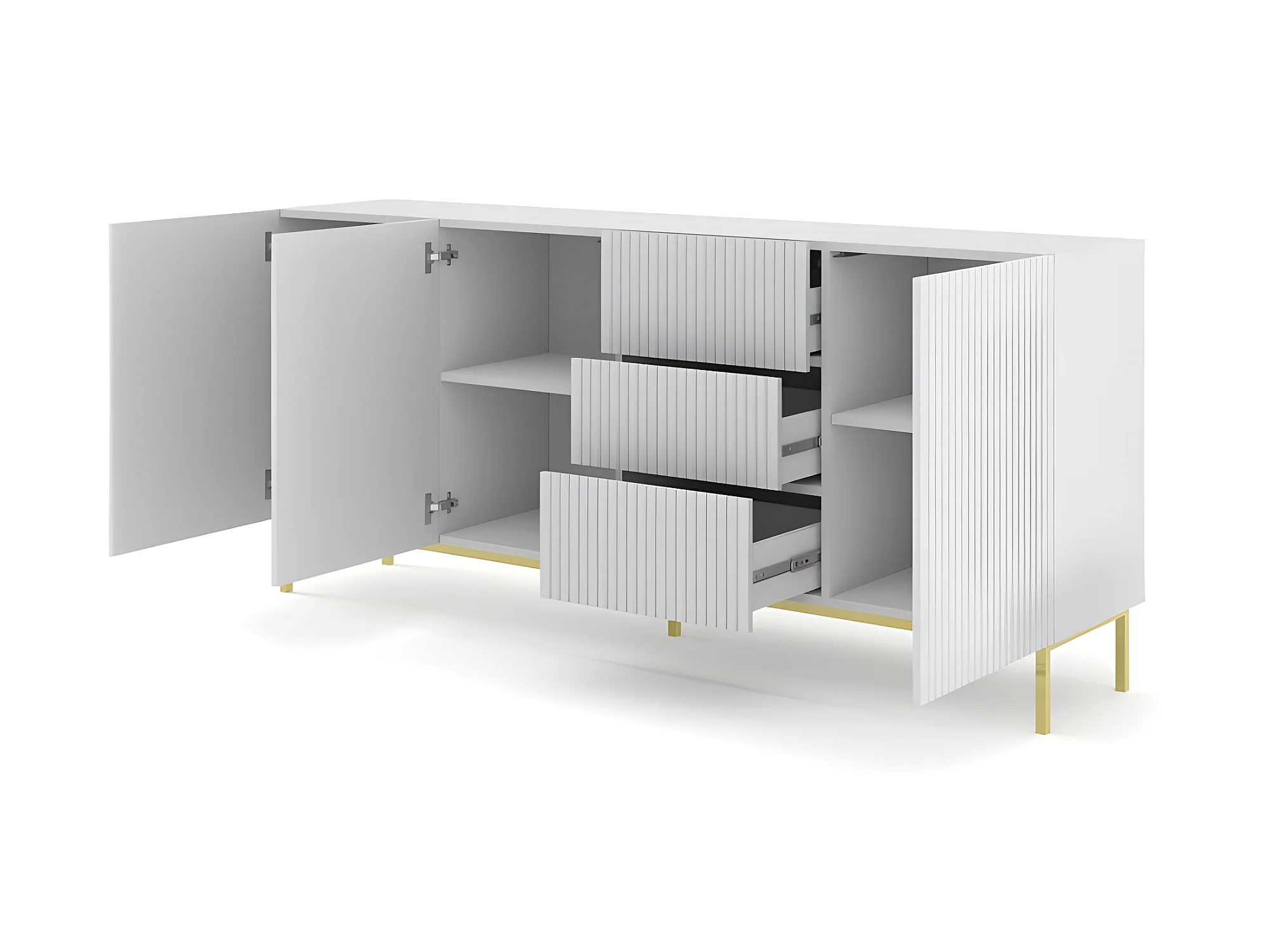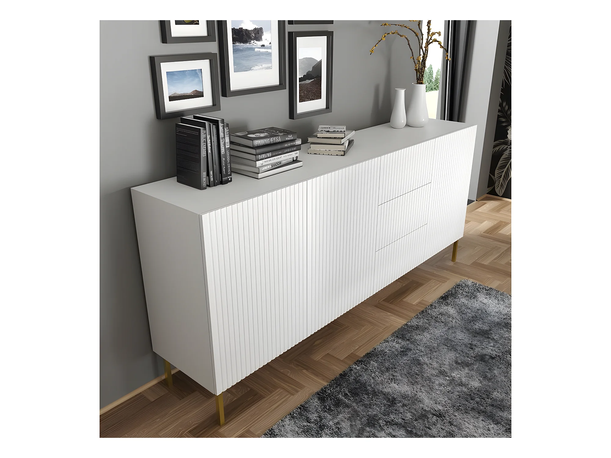 Commode de rangement Meuble universel Blanc Mat 200x42x89 RAVI B FILET 2D3S Pied Cadré or
