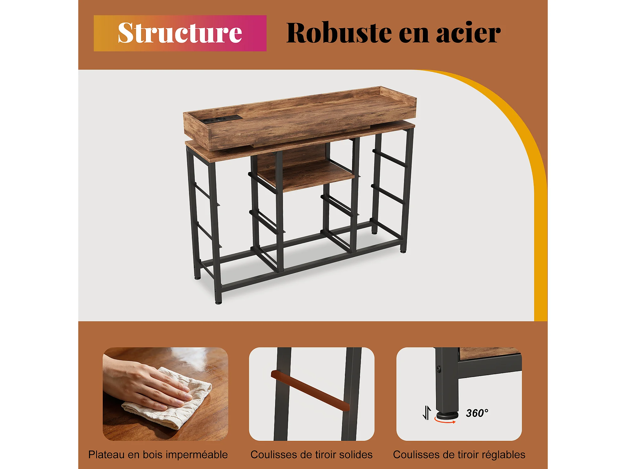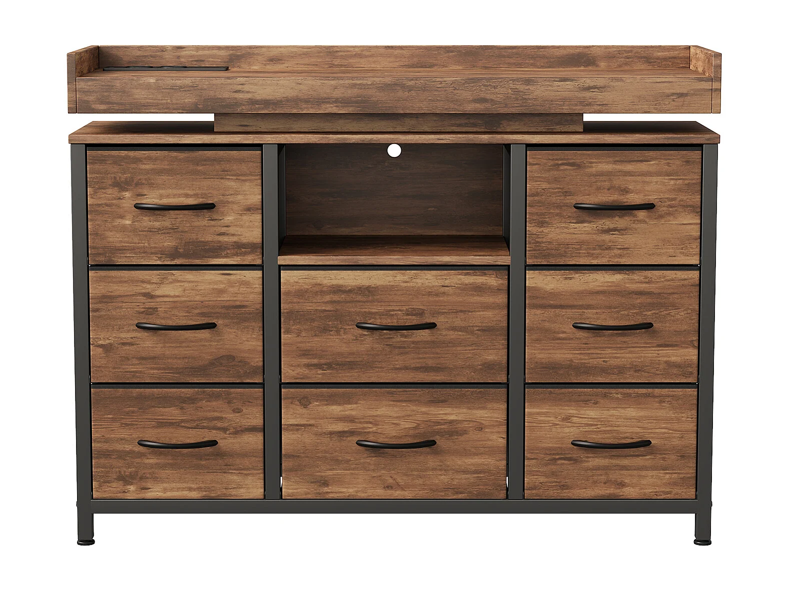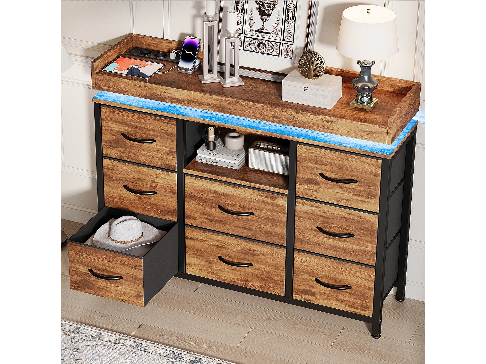 commode de tiroirs - - 108 x 30 x 82 cm - 8 tiroirs avec lumière LED RVB - avec prise de charge - marron