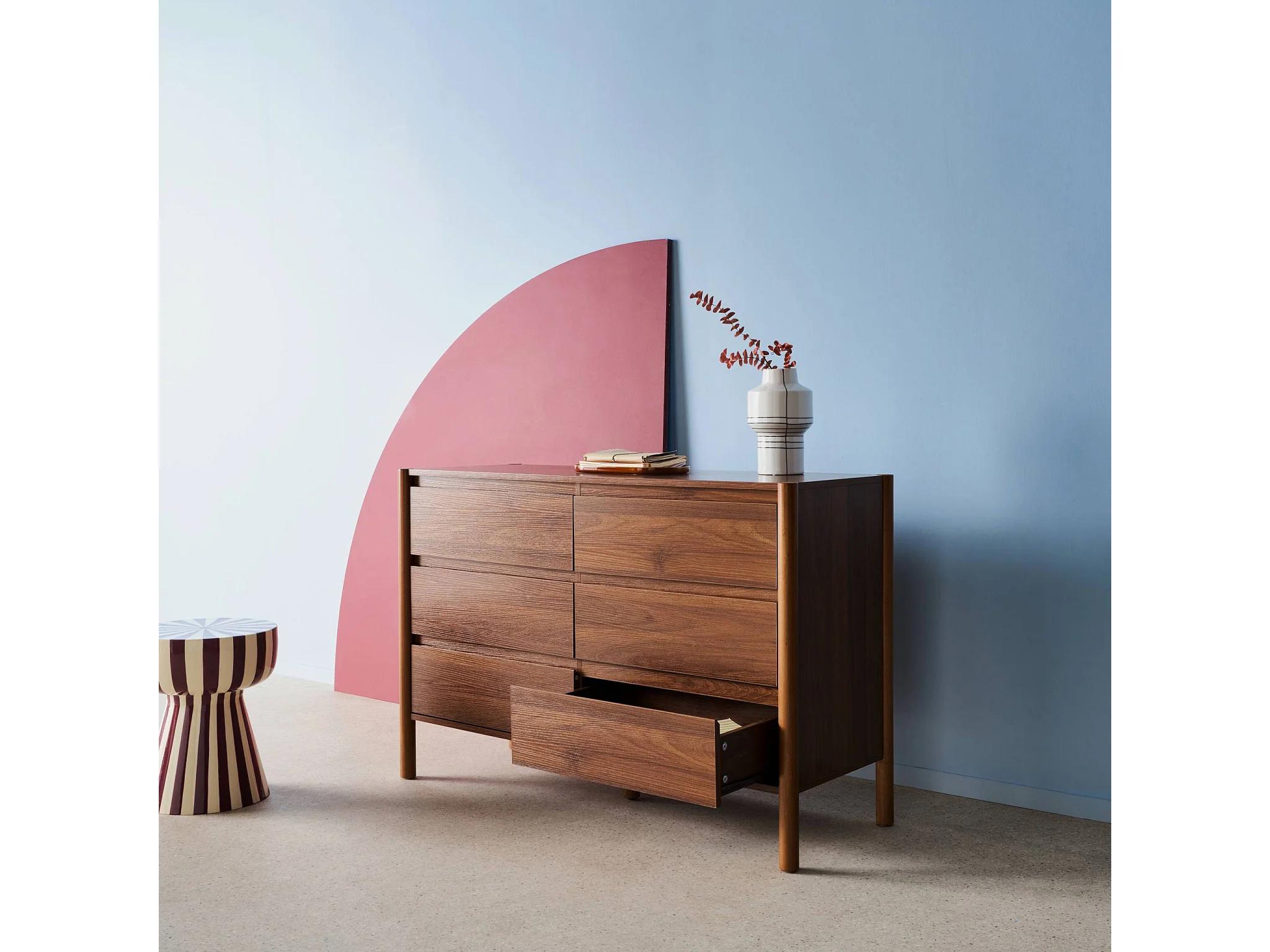Commode décor bois 6 tiroirs 120cm noyer - 120 x 42 x 78.5 cm - Harmony