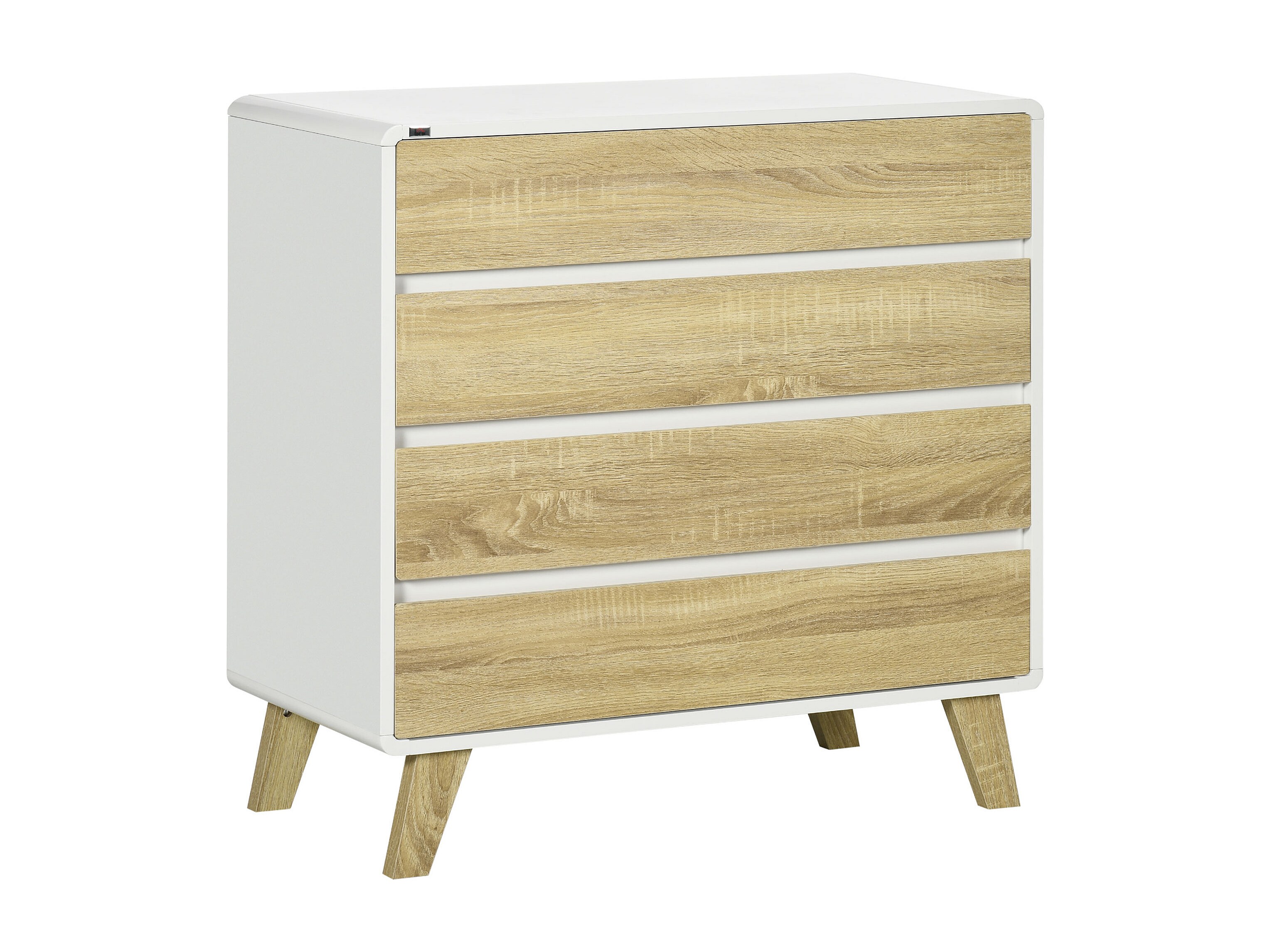 Commode design scandinave - 4 tiroirs - MDF panneaux blanc aspect chêne clair