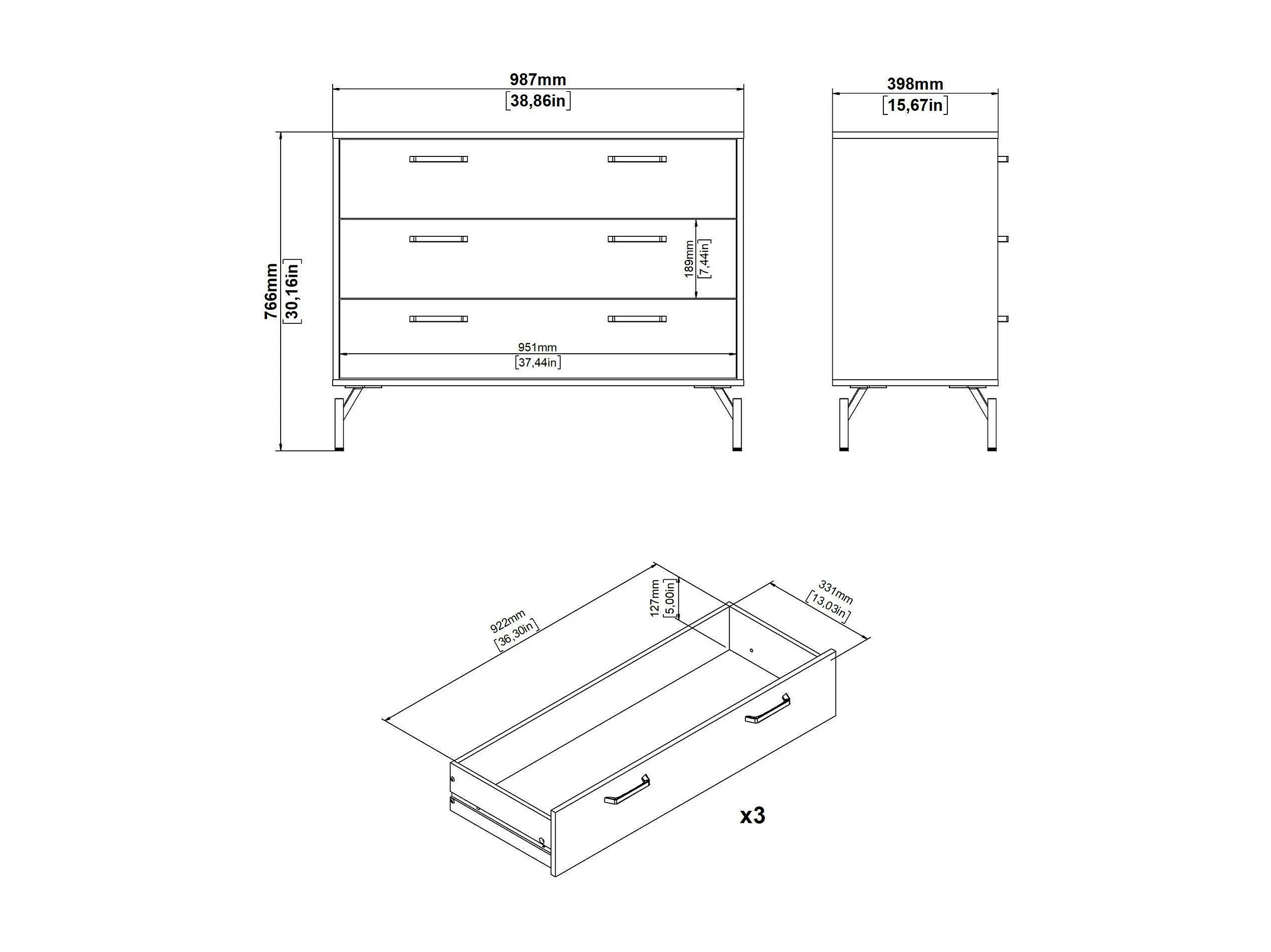 Commode Drenn, Commode polyvalente, Commode de chambre, Meuble avec tiroirs, 99x40 h77 cm, Noir