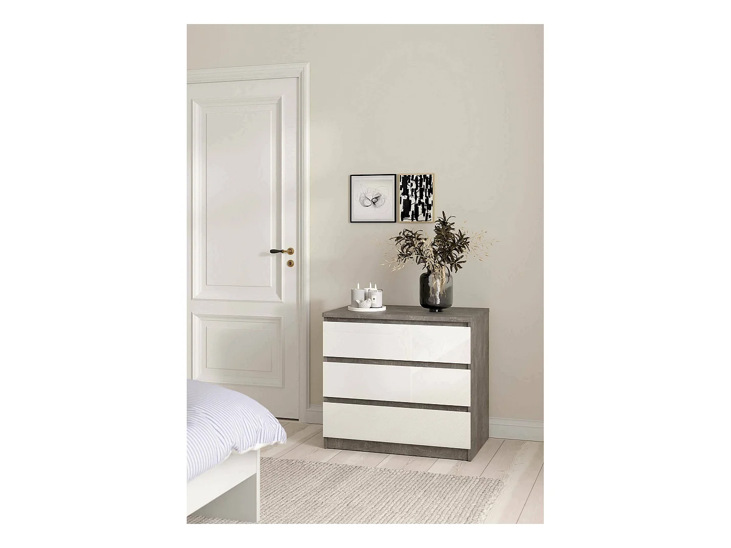 Commode Drenold, Commode polyvalente, Commode de chambre, Meuble avec tiroirs, 77x50 h70 cm, Ciment et blanc